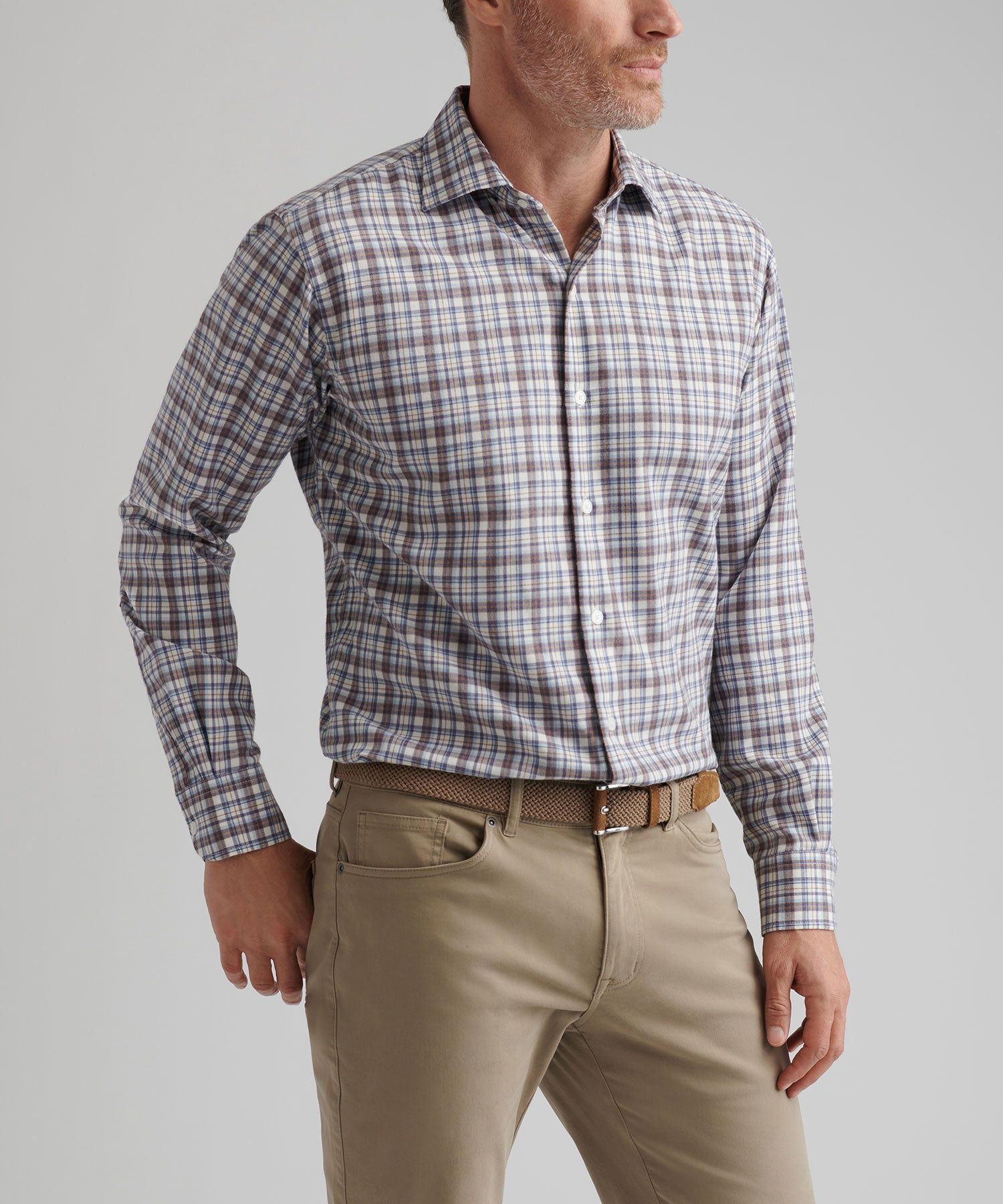 Welcome to your new flannel shirt. Peter Millar uses a lightweight blend of modern performance fabrics to create a soft, brushed flannel-like finish on this exquisite sport shirt. It also delivers with stretch and thermoregulating properties. It keeps the modern touch going with a spread collar and a double button cuff closure.