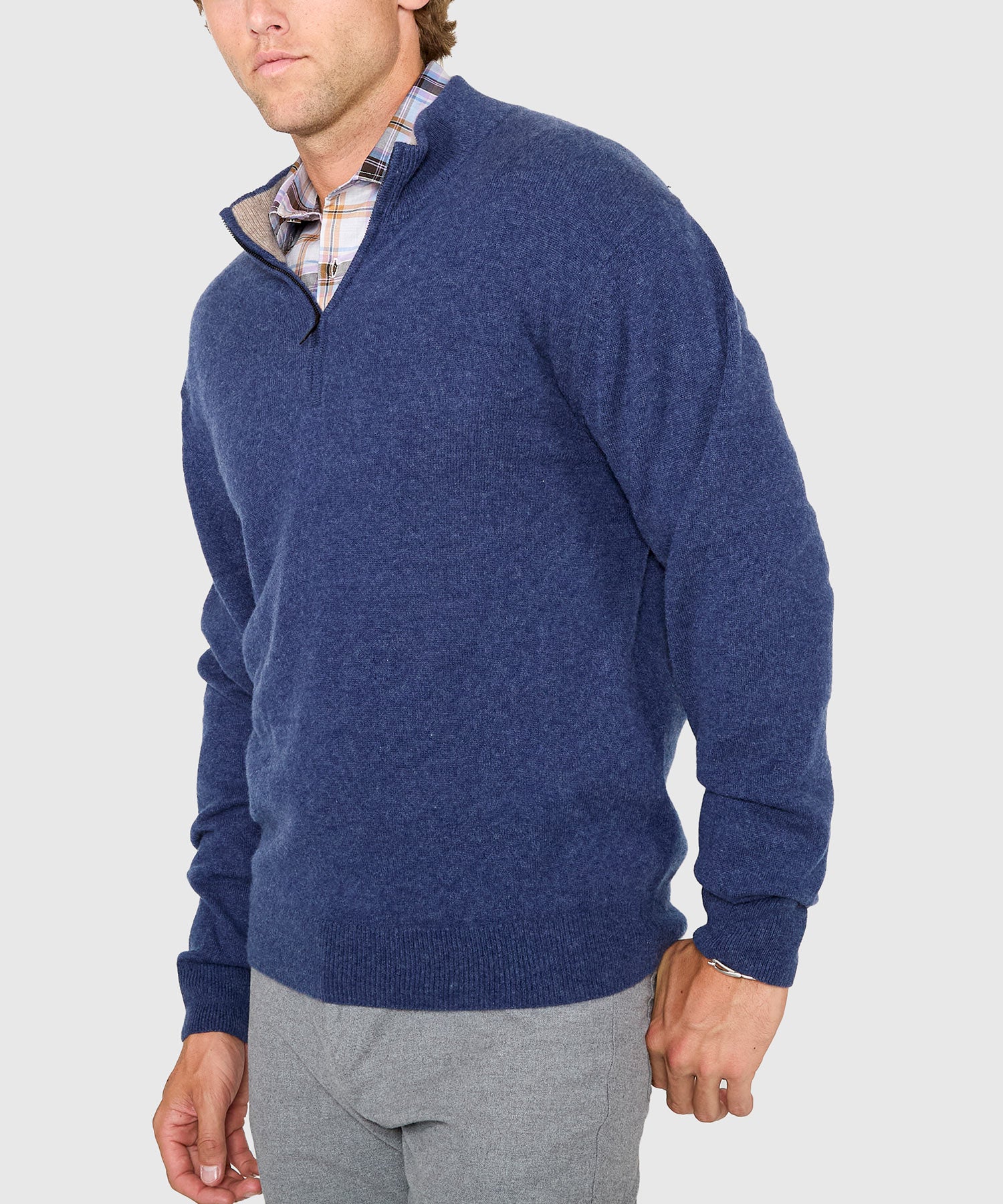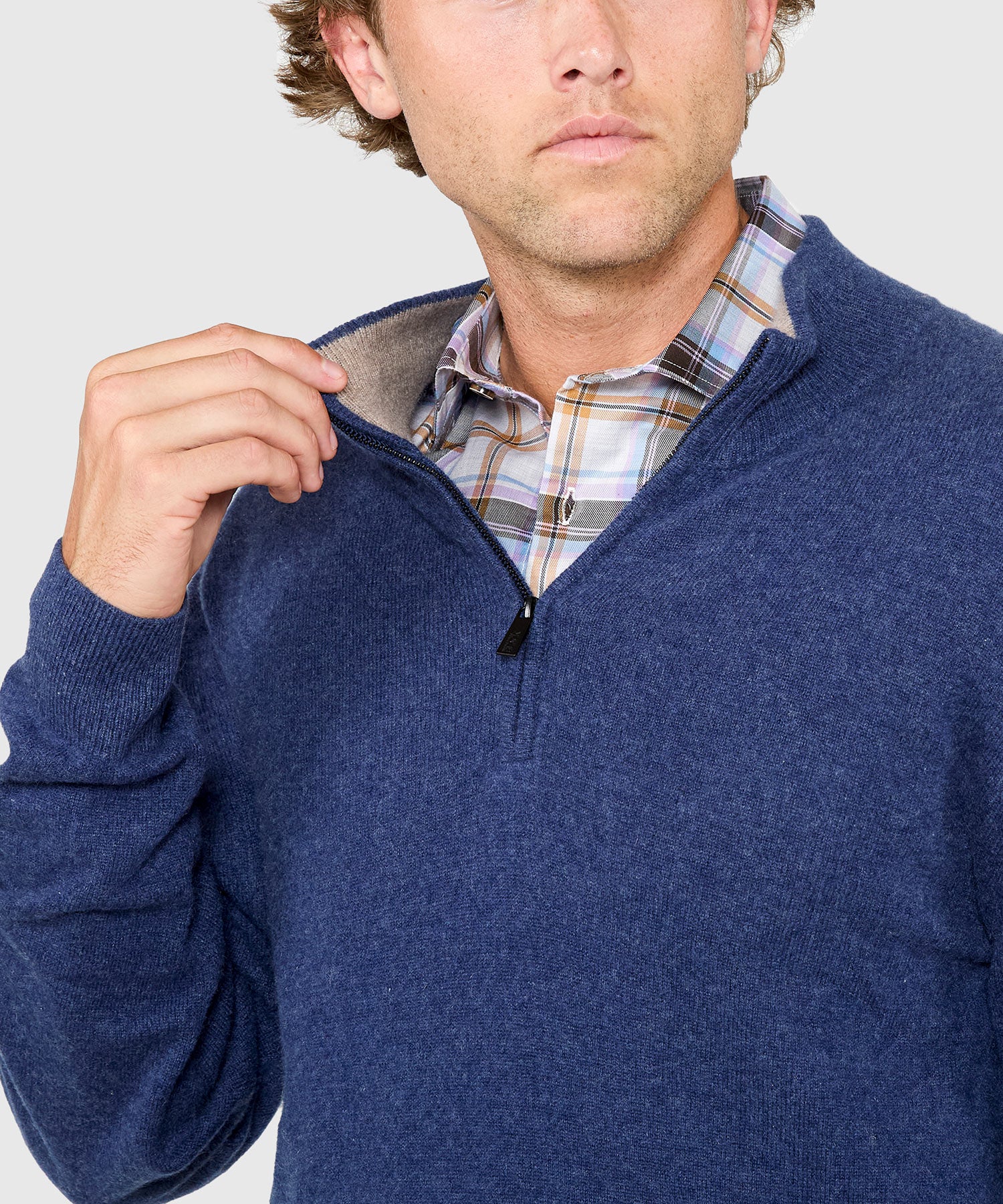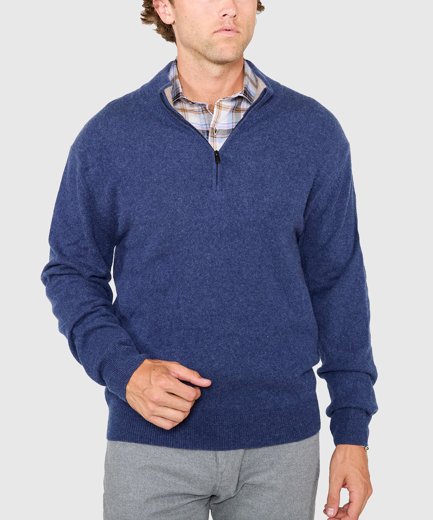 Layer up in luxury this season. This big and tall cashmere quarter zip sweater radiates a simple elegance and is a sumptuous way to elevate a casual look. It's also a way to add even more class to a dressy look. One of the best ways to employ it is under a winter weight sport coat. It can also be used to add a dimension of rugged sophistication to a sleek leather jacket and denim ensemble.