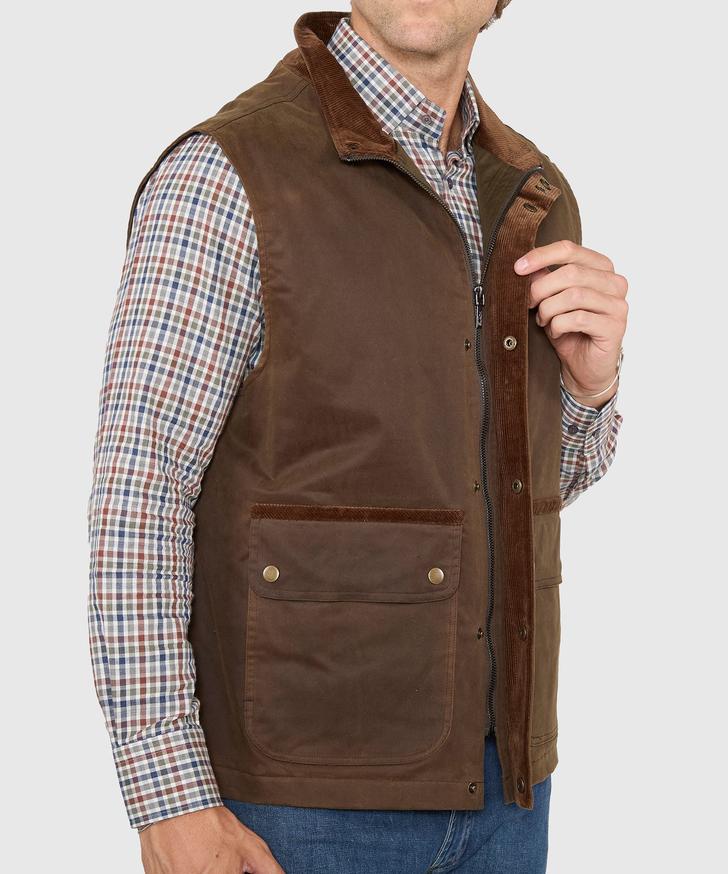 Waxed outerwear has had a long and rich tradition emanating from outdoor activities. The centuries-old technique of applying wax to a cotton exterior creates a water-repellent surface making this a first round pick for your outer layer of choice this season. It's not a cumbersome as a jacket but still provides valuable warmth and protection from the elements. Storage is not a problem due to the ample pocketing and a snap front helps to reinforce the full zip closure creating a garment designed to see you through any kind of weather.