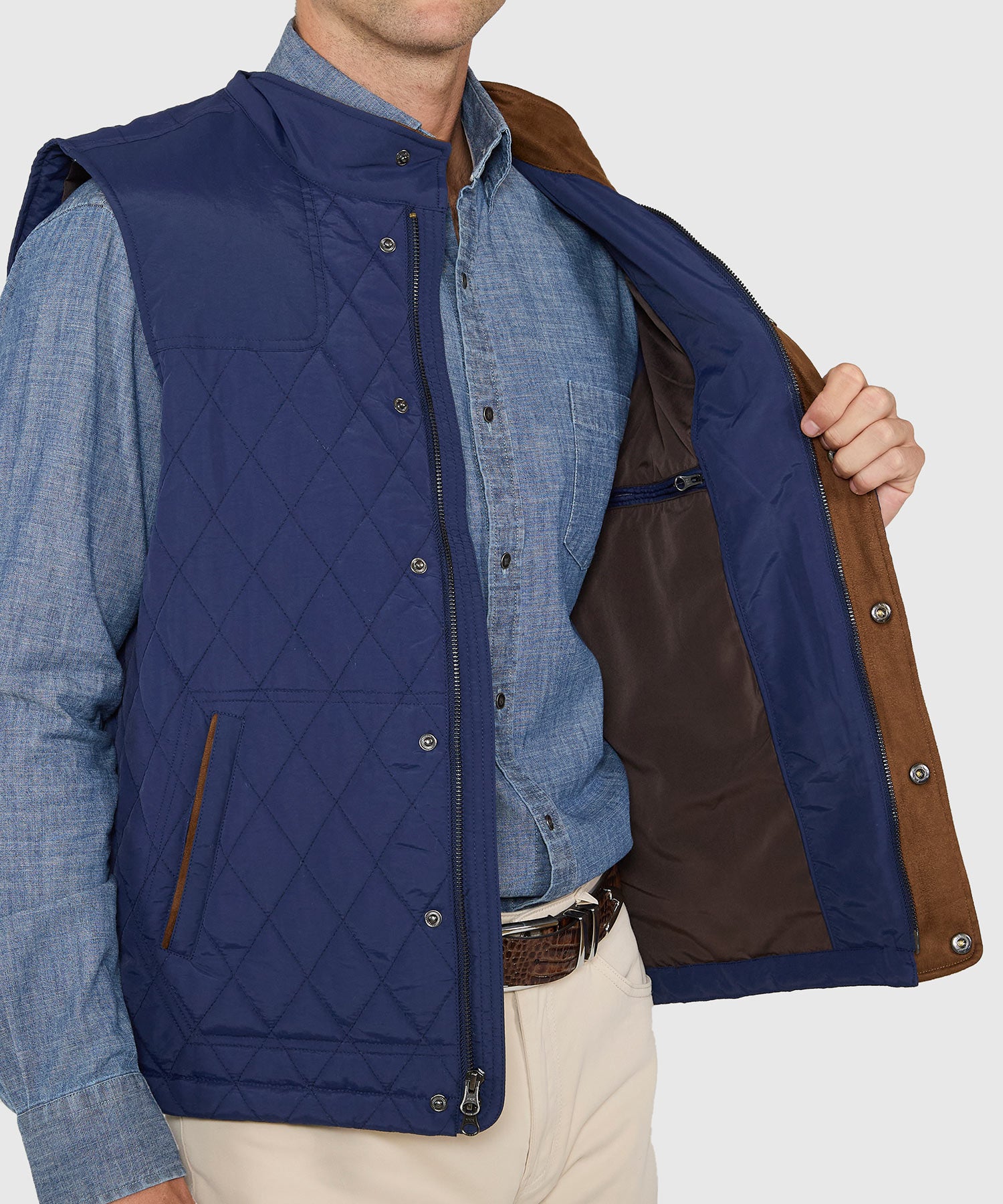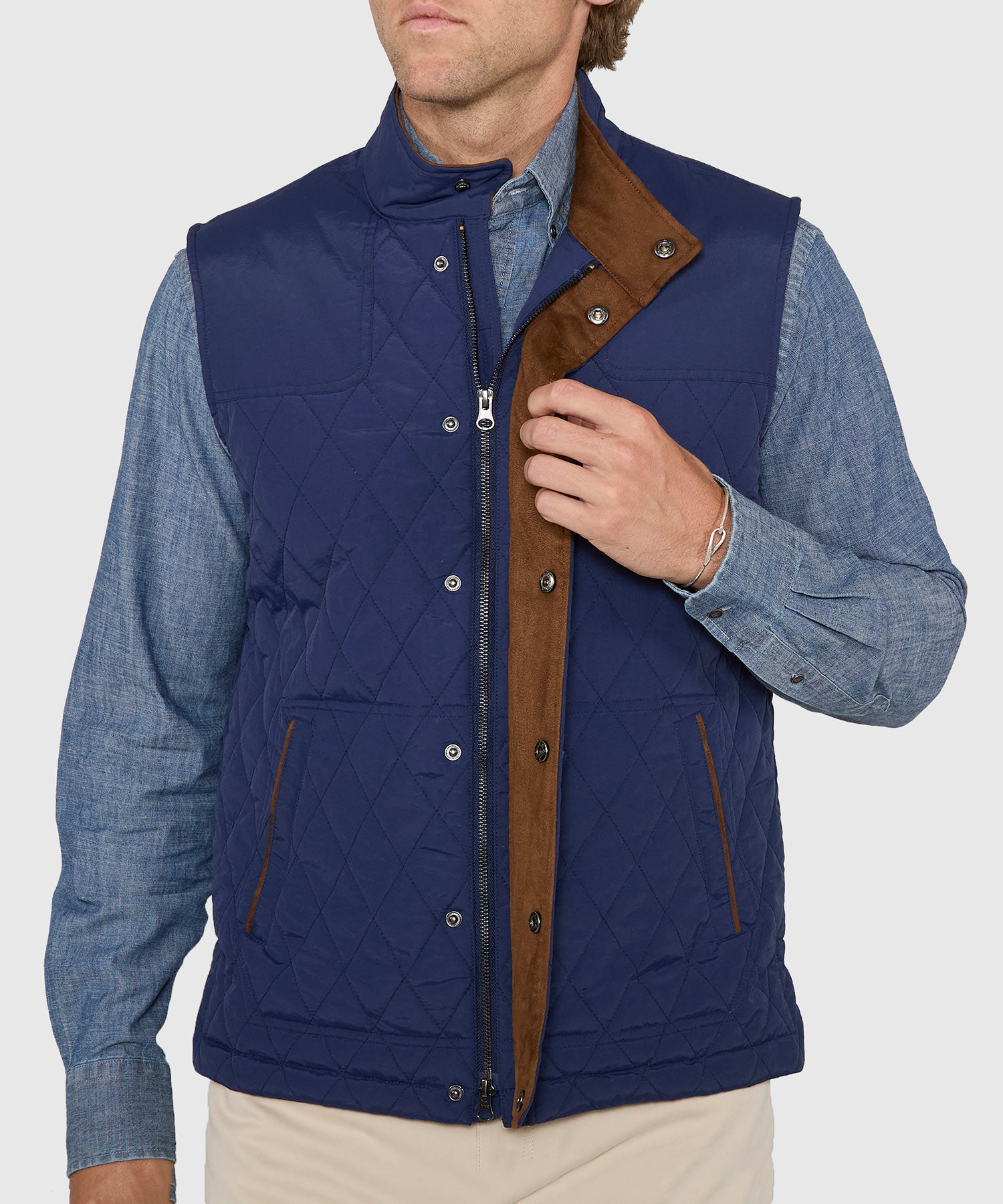 A reliable, comfortable vest is an essential piece of clothing. Maybe you're already layered with a bulky sweater and you just need something to serve as a final piece to maximize warmth and comfort. Maybe you're looking for that elusive last item to accent an outfit. This vest can be the answer to both. It takes care of the comfort question by featuring a quilted front. It has a lot of functionality too with a high stand collar to combat the wind. A two-way zipper allows for a more customizable closure.