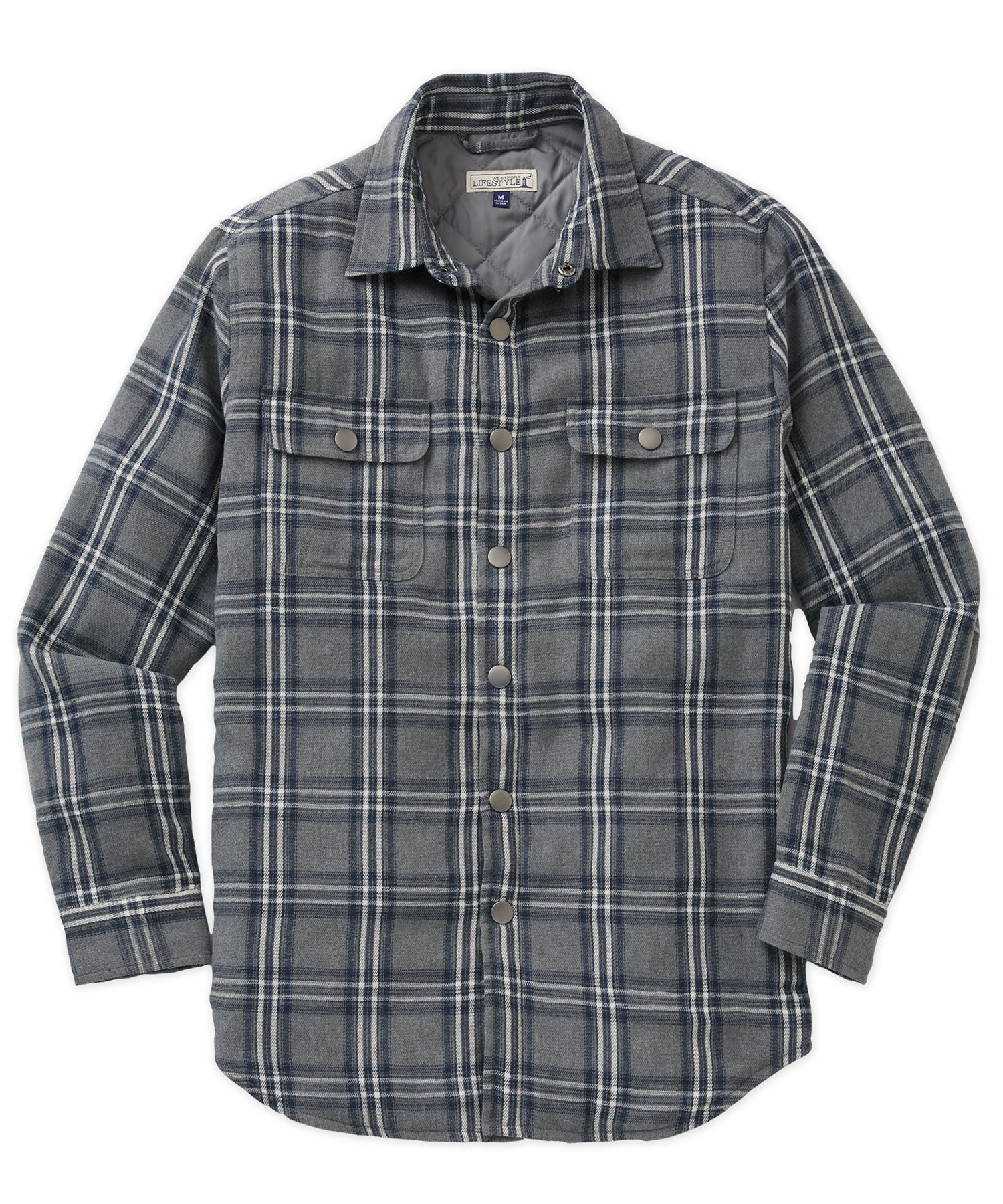 This shirt jacket is a great option for when it's cold but your not looking for a layer with a lot of bulk. It has a quilted interior that will keep you warm and a soft flannel finish.
