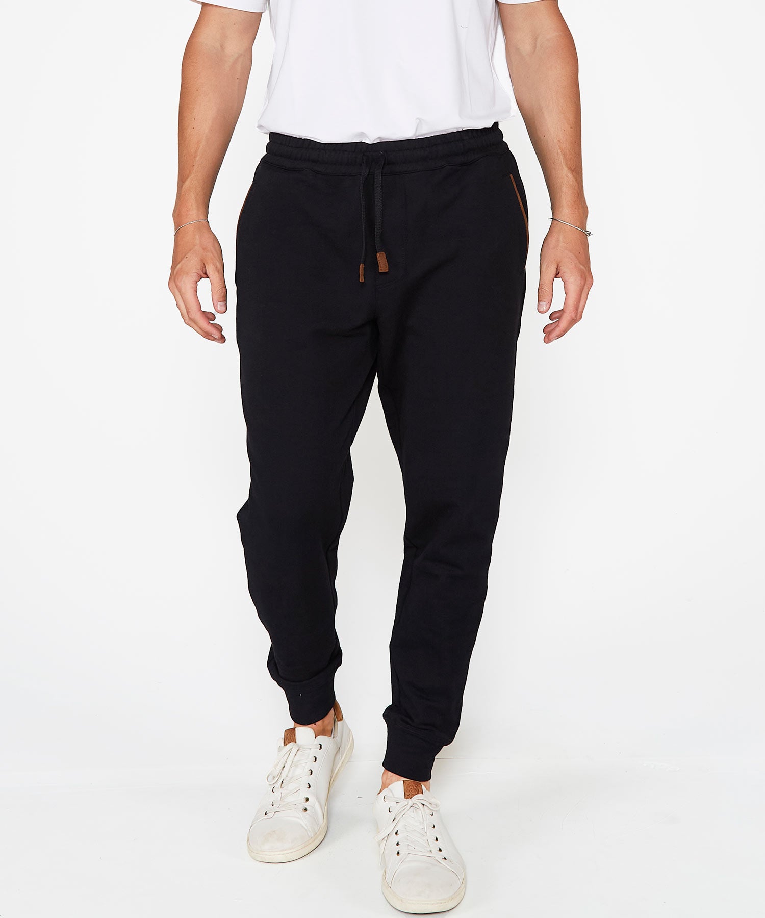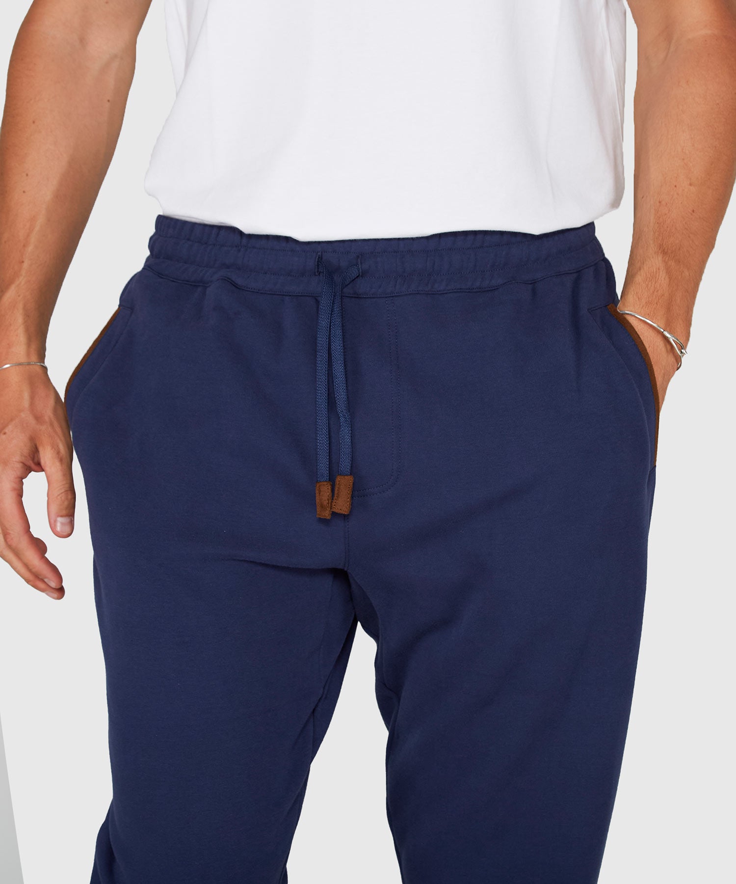 This is an elevated way to incorporate an athleisure piece into your casual wear rotation. It places comfort and mobility center stage by featuring a cotton rich blend containing stretch elements so it moves with you. A full elastic waistband all but guarantees comfort and the drawstring allows for a customizable fit. Wear it on its own or pair it naturally with its quarter-zip pullover mate (#43198).