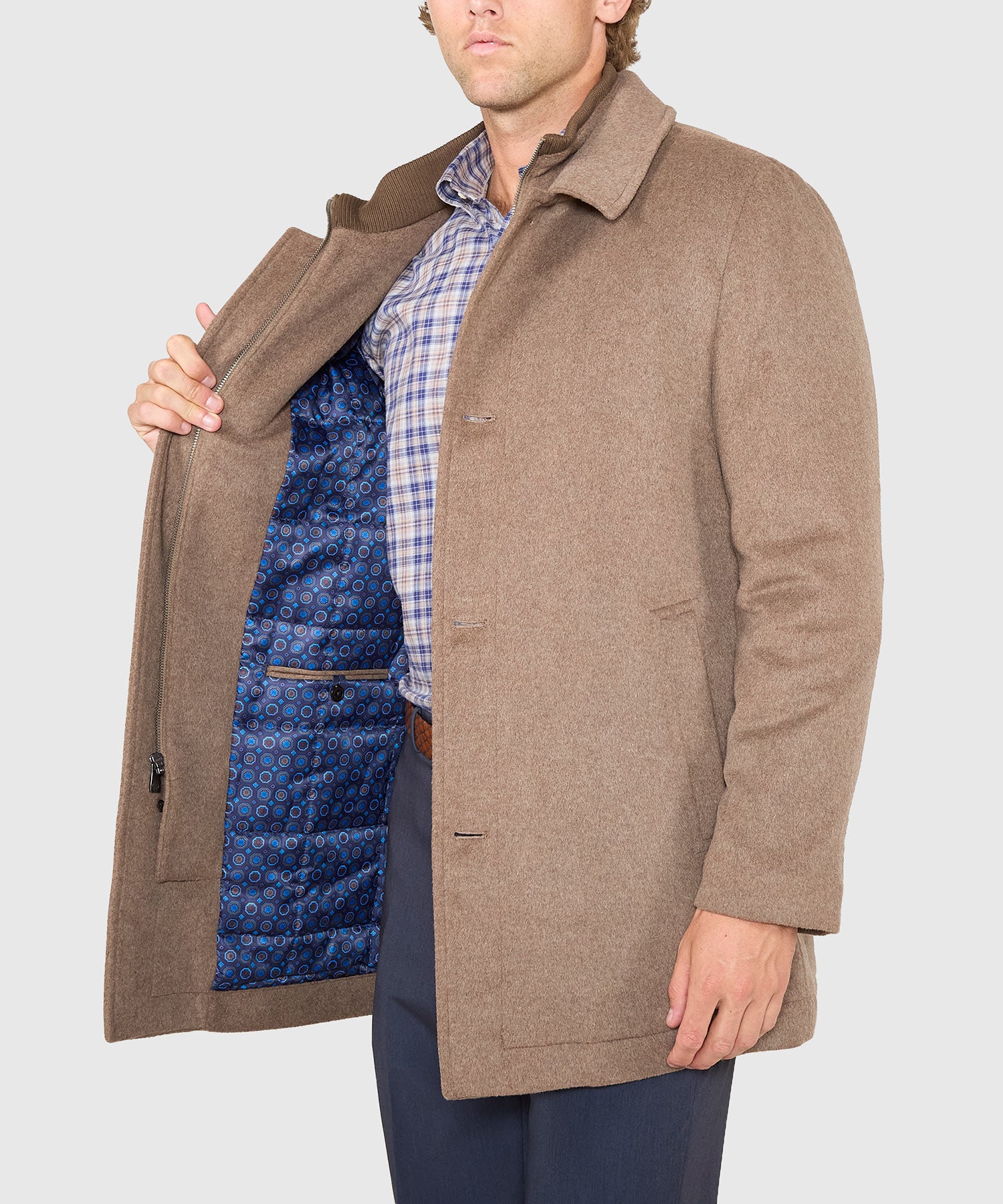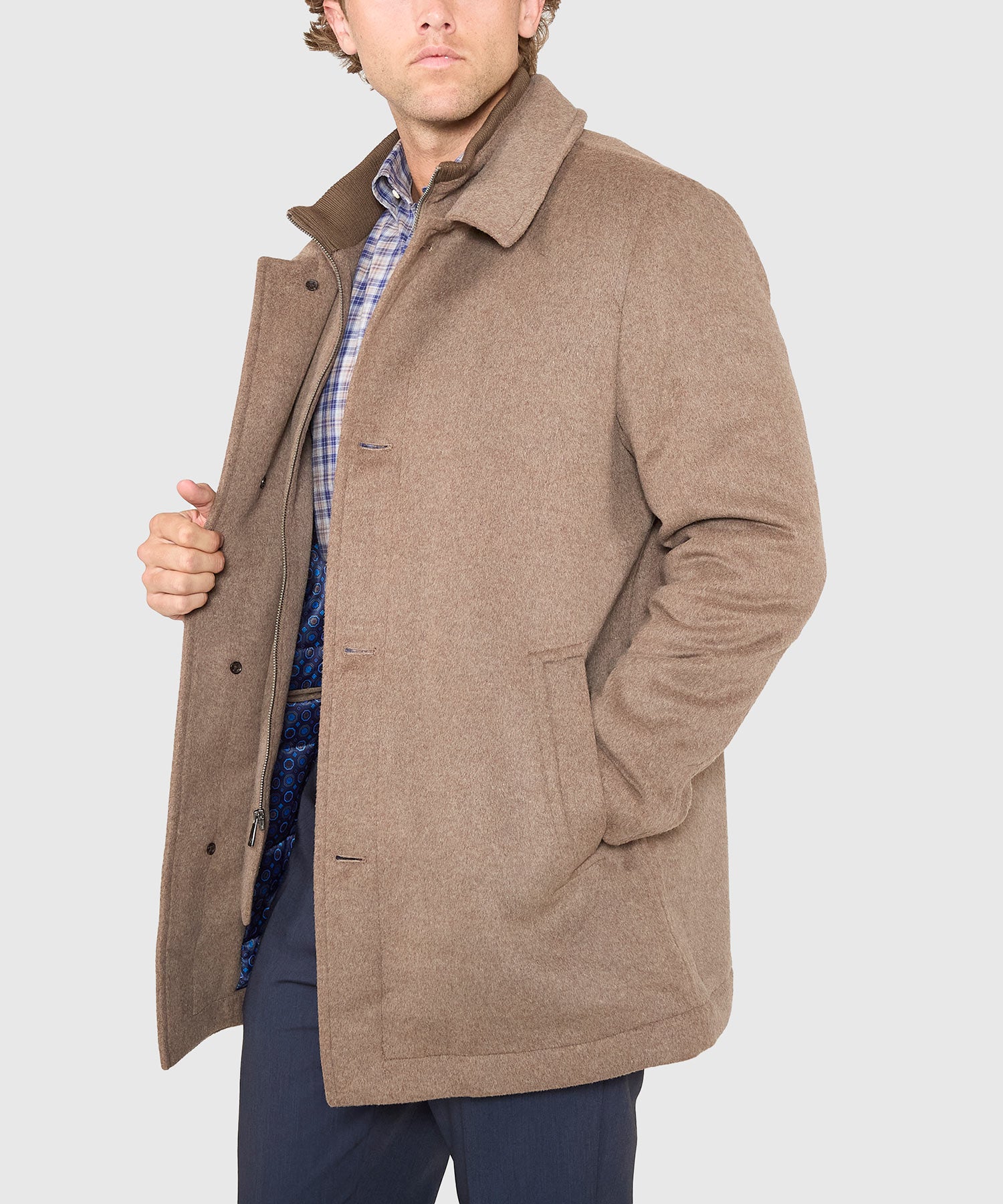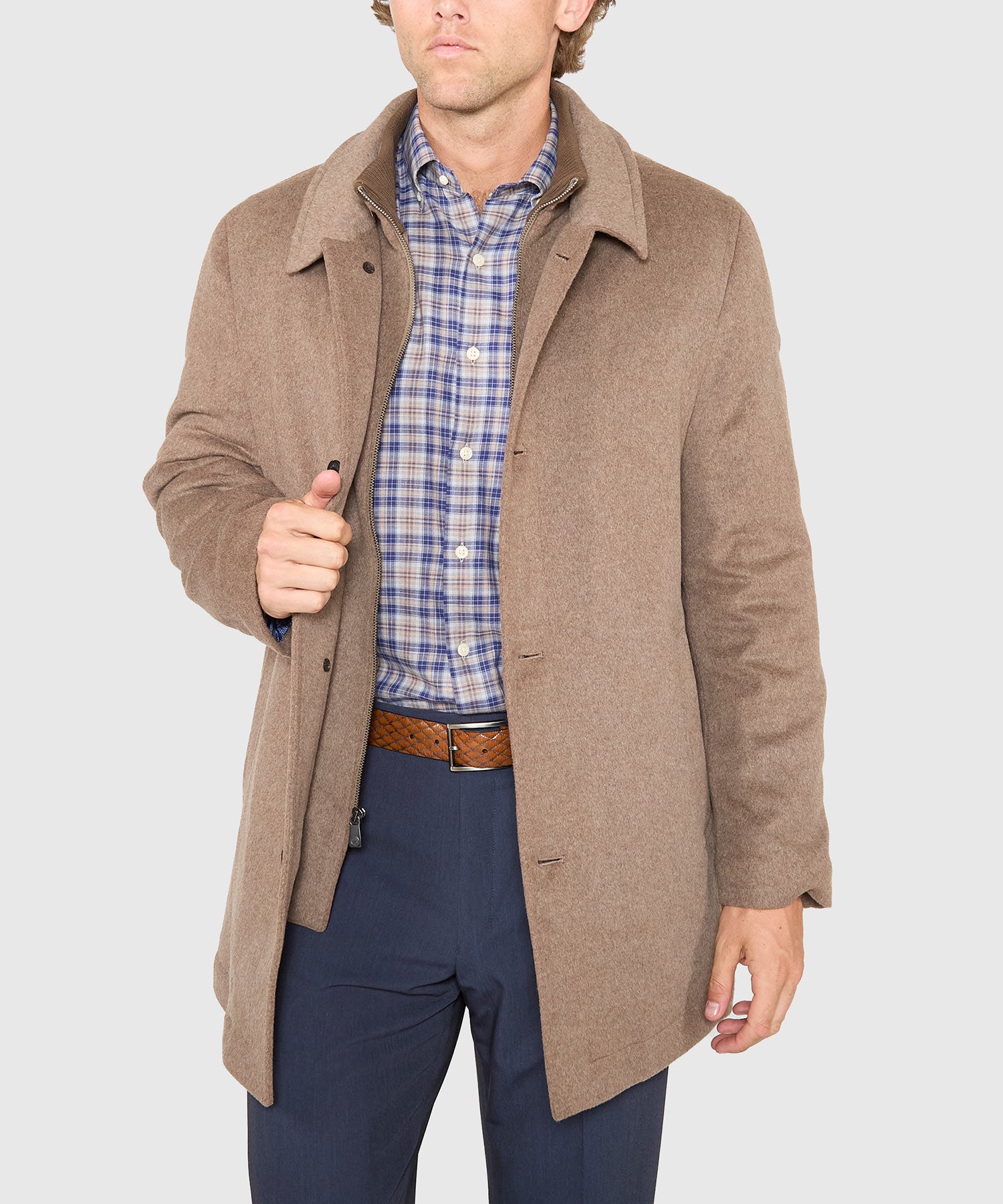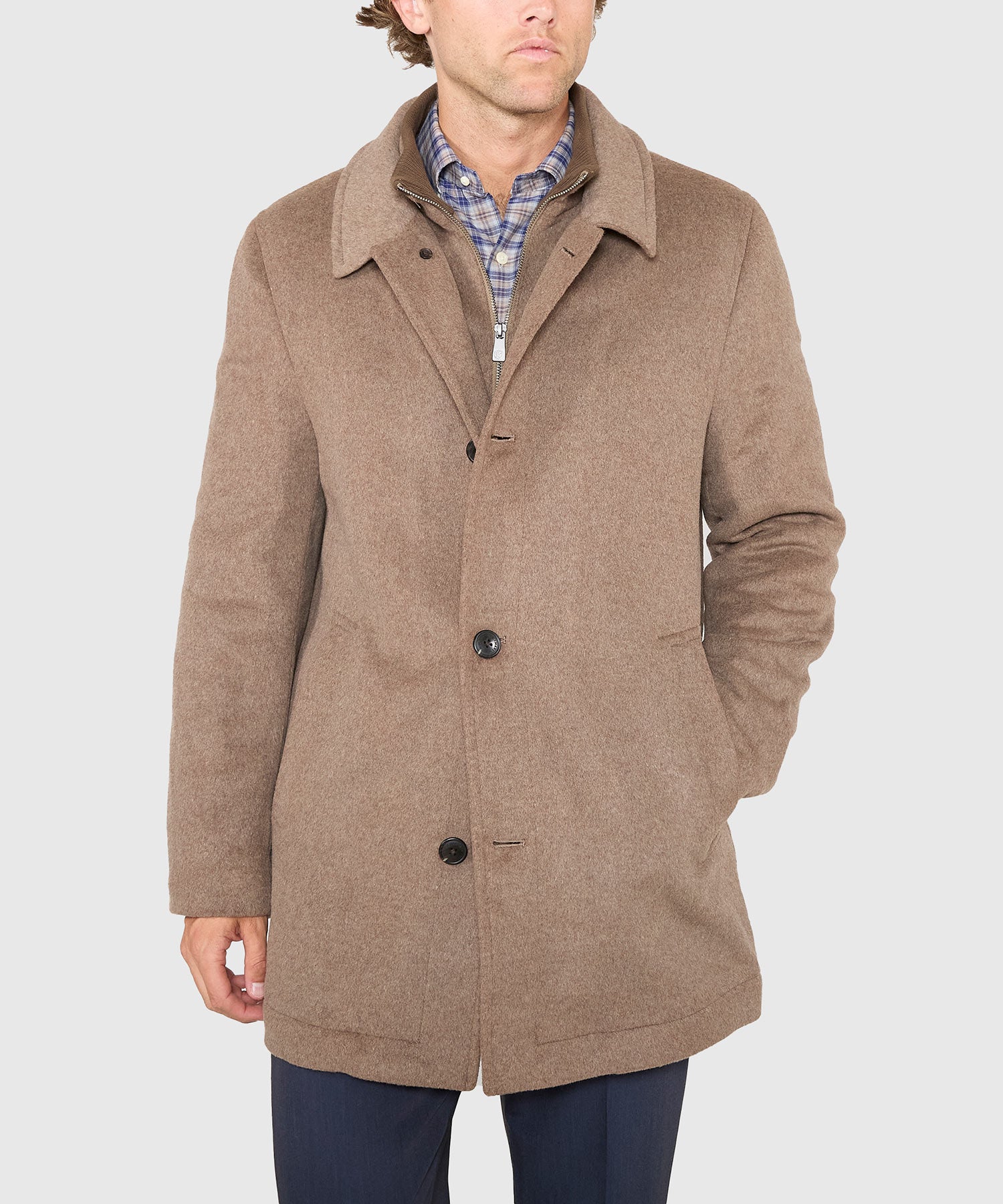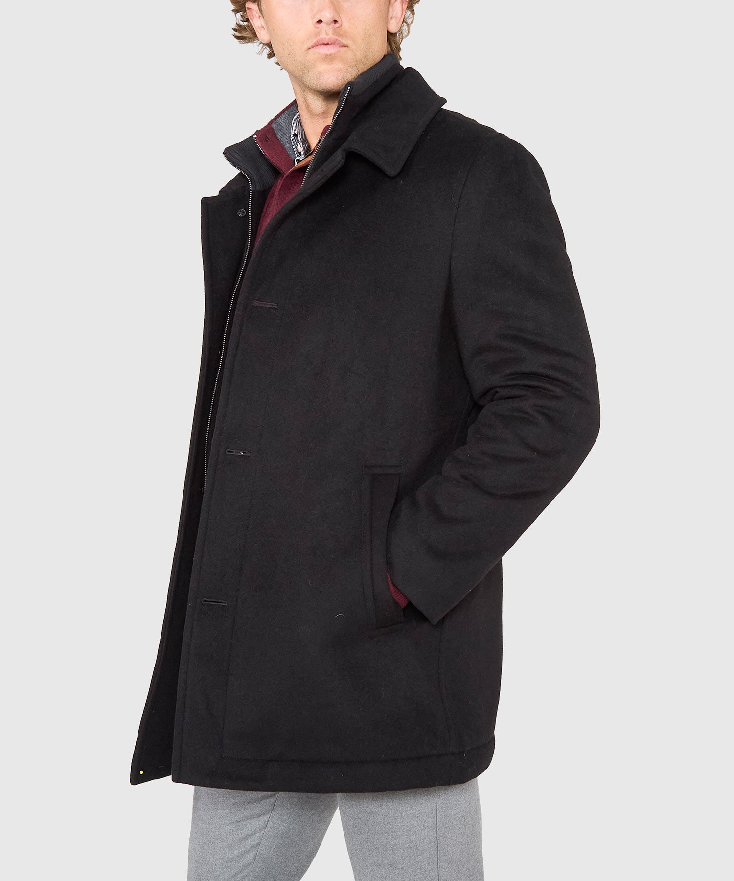 The coldest days call for an exterior layer that consistently delivers on warmth and comfort. Answering that call is this big and tall jacket from Hart Schaffner Marx. It's made in a three-quarter length for a more modern silhouette and a greater degree of mobility. Its wool blend is augmented with a sliver of performance fabric to better enhance its fit and comfortability. Arguably best of all it sports a bib that maximizes its ability to keep the wearer warm. Sized to be worn comfortably over a suit or sport coat, it can be buttoned and zipped close to the neck so not even an ill wind will chill you this season.