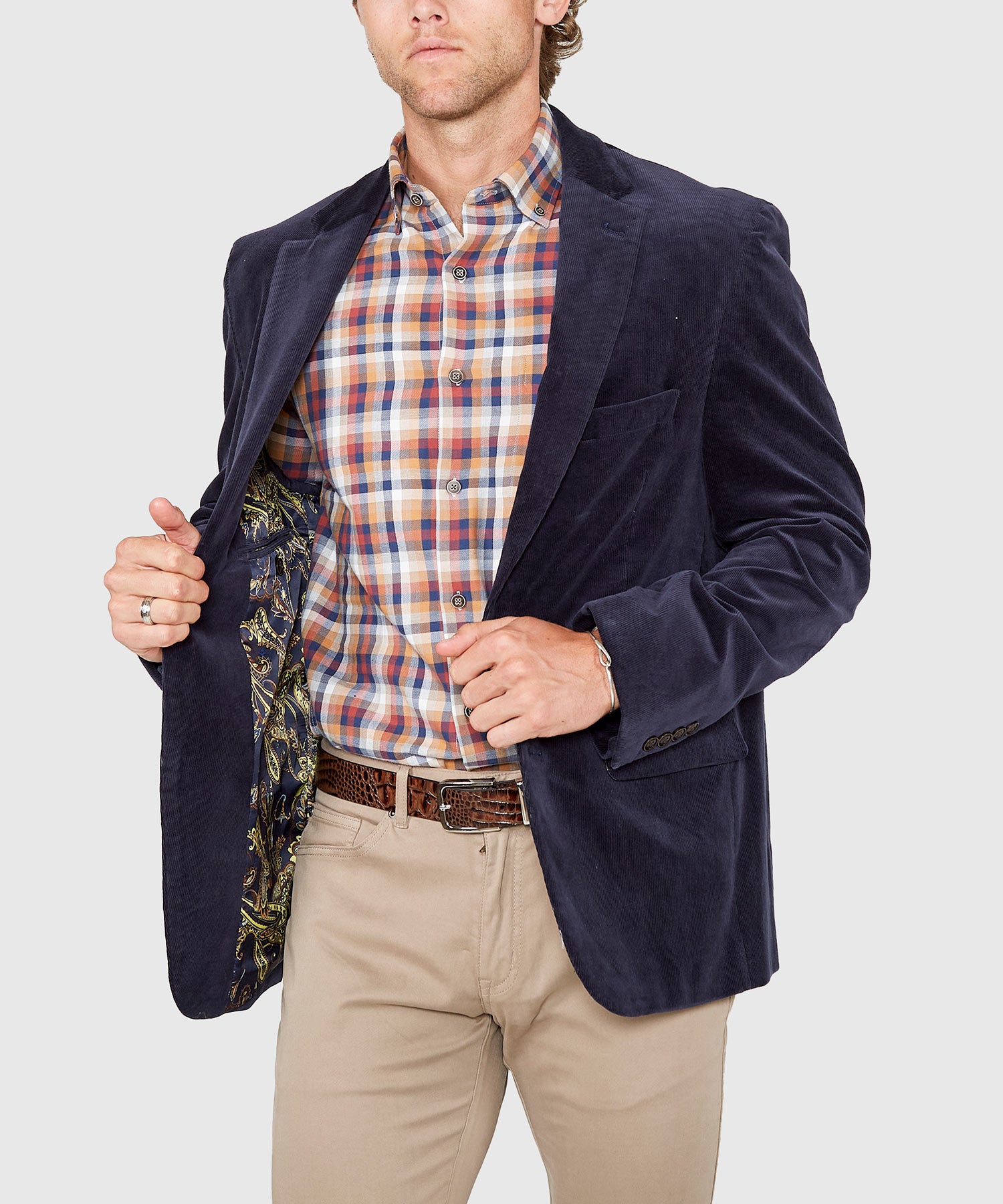 Corduroy is a hallmark fabric of the fall and winter seasons. It finds its way into many types of clothing; everything from shirts to pants and outerwear. A corduroy sport coat is a long-standing member of a seasonal wardrobe too. This big and tall one takes the classic piled cotton and adds a touch of stretch. This ensures that it will not only look great being paired with wintery-flavored plaid shirts and flannel pants but that it will also wear comfortably.