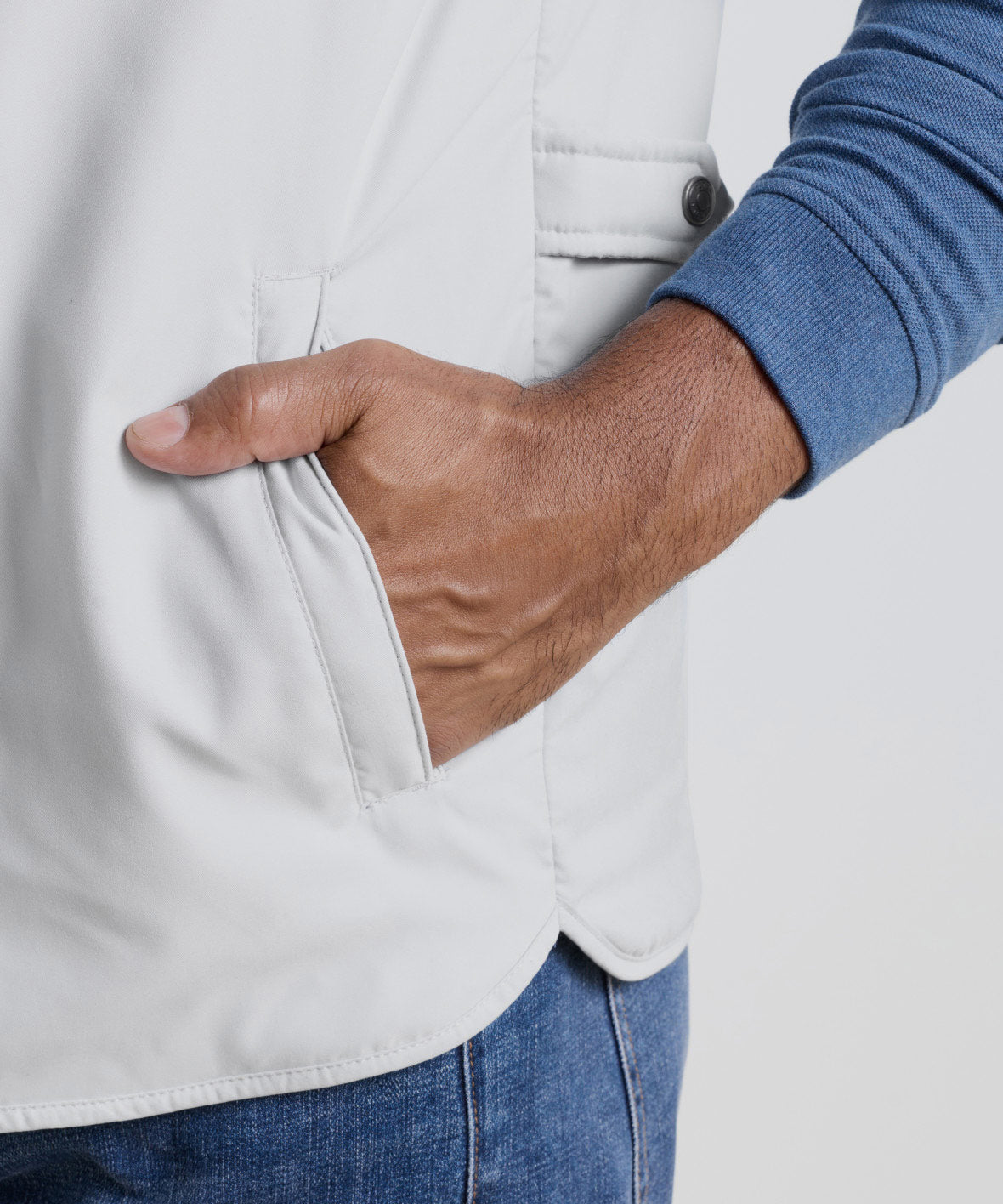 This vest is a brilliant example of how the two worlds of performance and style merge to offer a layering piece of superb quality. Peter Millar excels at crafting a whole swath of essential pieces featuring these modern fabrics. These materials convey elements of stretch, greatly improving the comfort level and mobility of any garment to which they are applied. Beyond that, this big and tall vest offers a great level of functionality and is certainly one that you can employ as weather permits. A full zip front allows you to customize how you wear it, and the high collar helps to protect from the wind. It comes with front pockets for your hands and belongings. Adjustable tabs on the side help to make for a more comfortable fit.