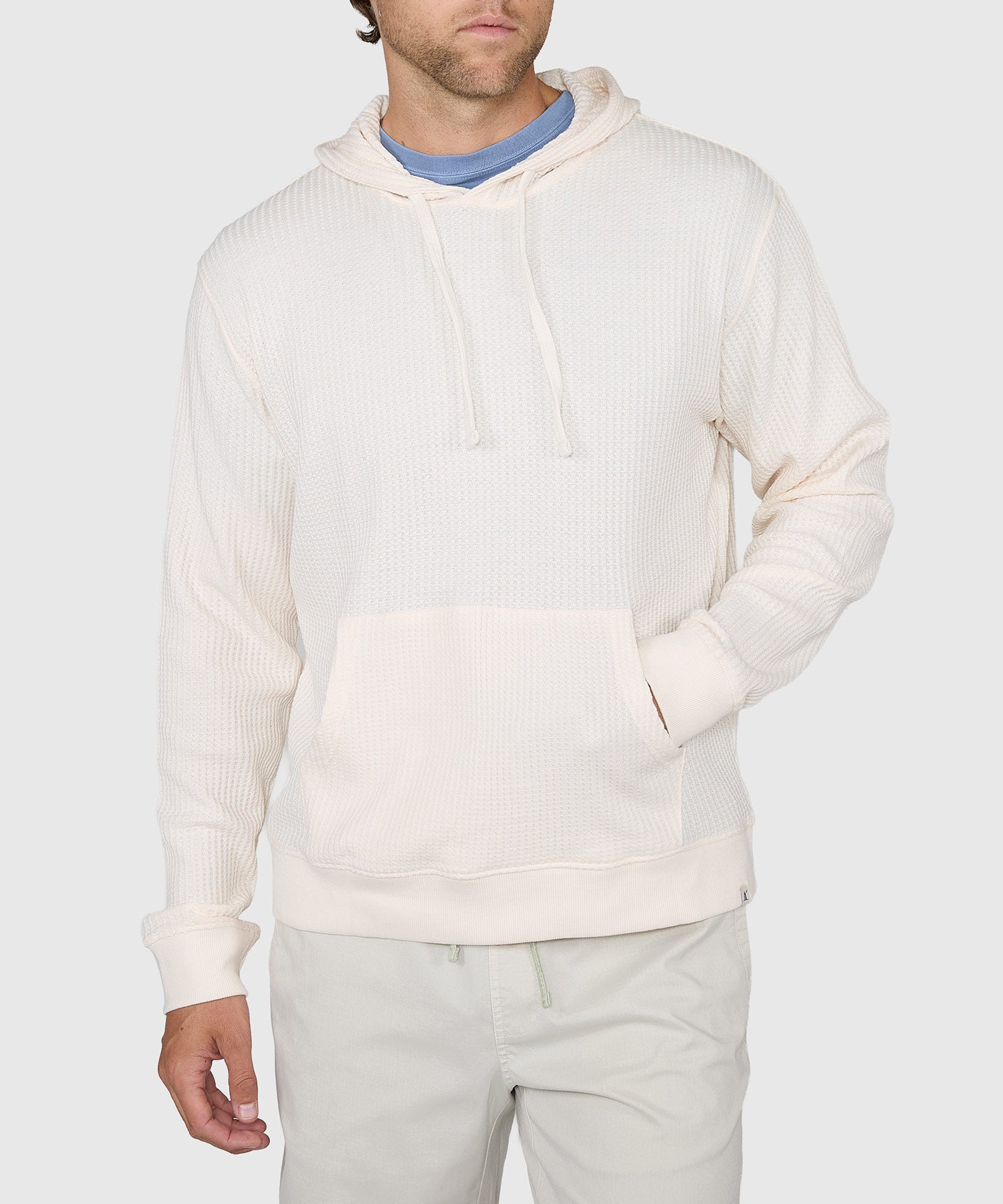 It’s in the name. Salt water and the cool breeze of the beach are seemingly in the DNA of this big and tall pullover. At the start, it’s made from a super-soft cotton with a textured knit look and feel. It nails the part of the hoodie you’d wear while taking an early seaside morning walk. It’s also going to play a part when the sun goes down and the wind picks up by the shore. It’s classic in its styling, with a drawcord hood and a front kangaroo pocket. Expertly crafted ribbed cuffs and bottom hem provide a clean look to the silhouette.