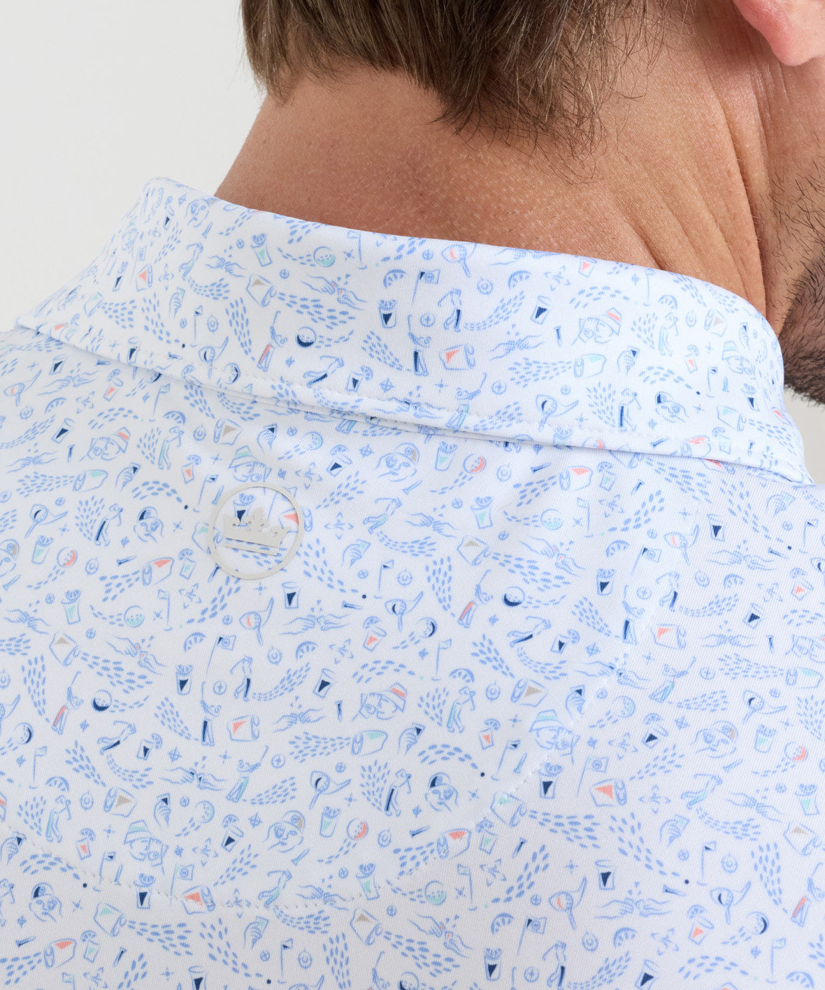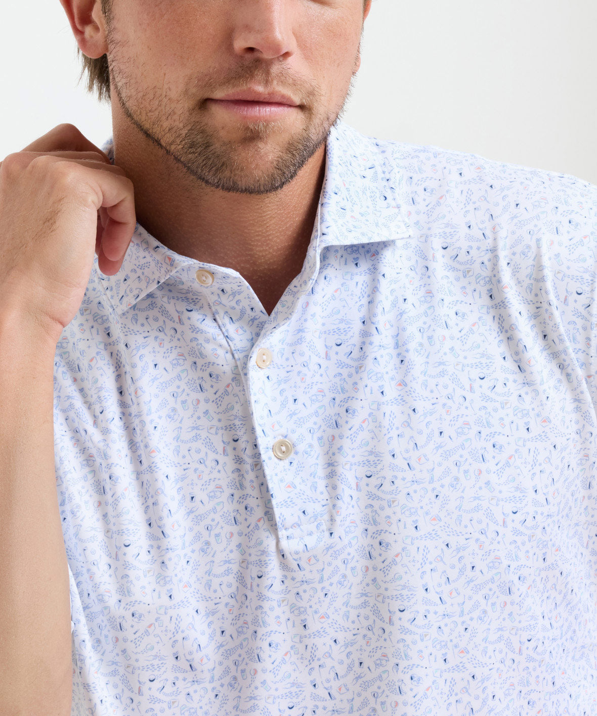 Patterns and prints on polos have been a mainstay for a long, long time. Whether it's a stripe, abstract geo design, repeating motif, or something more whimsical, they're a great way to introduce some flair into an outfit. They also look great paired with jeans, chinos, and shorts alike. This big and tall print polo from Peter Millar brings all the familiar benefits: stretch performance, moisture-wicking, sun protection, and wrinkle resistance. The three-button placket keeps it classic.
