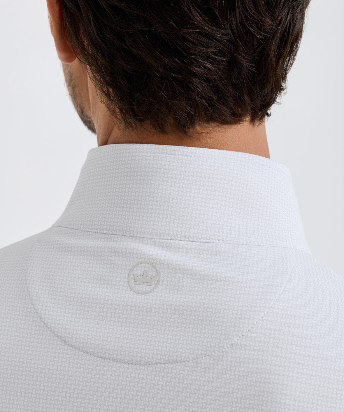 • Signature Peter Millar Crown logo below back collar