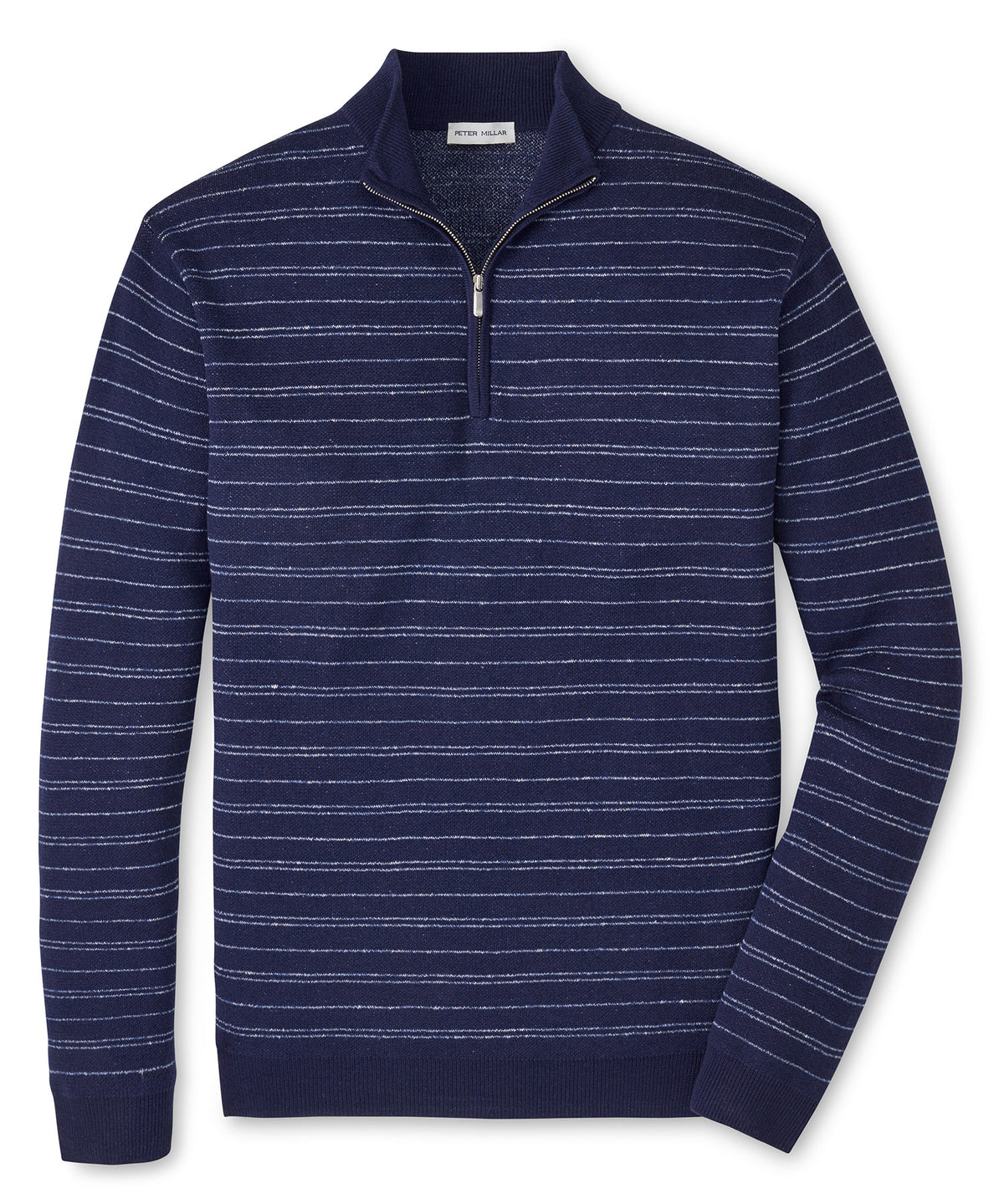 Sweaters can still play an important role even when the weather turns warmer. It all comes down to fabric choice and weight. This big and tall quarter-zip comes to us in a lightweight blend of super-soft premium merino wool and breathable linen. It also has a tasteful and stylish stripe pattern that pairs well with a variety of sport shirts.
