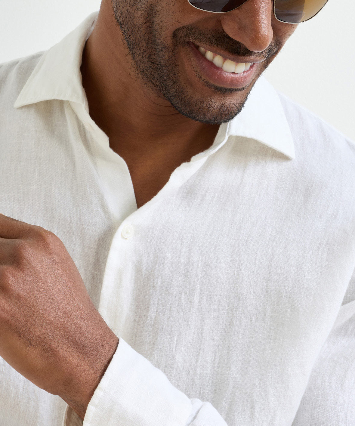Linen is a spring/summer mainstay. You might say it's the fabric of the season. It's prized for its remarkable ability to keep the wearer cool. It's also prized for its unique feel and style. It's undoubtedly the most carefree-looking fabric, if not the most forgiving when it comes to staying neat. Fortunately, the wrinkling it's prone to is part of its charm. It all adds to the relaxed vibe we all expect from it. This big and tall long sleeve is a great representative of an easygoing approach. It's clean, unadorned, and crafted with impeccable style. Sporting a slightly spread collar and mitered sleeve cuffs, it's also ready to feature under a blazer with chinos just as easily as with shorts and sandals.