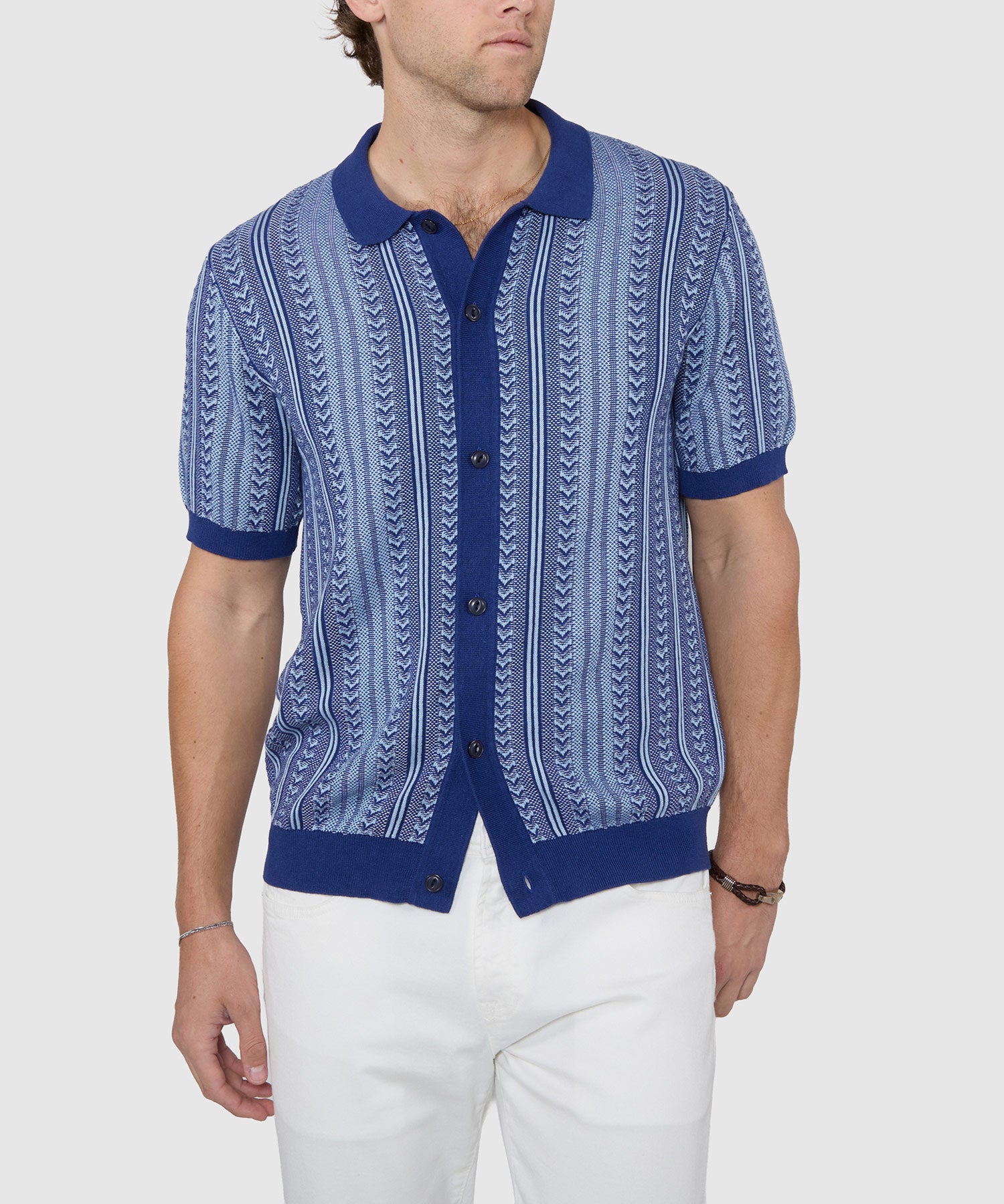 Retro-style tops have been seeing a resurgence these last few seasons, and they haven’t lost any of their charm and swagger. They come in a lot of different fabrications and styles, but the polo style like this one is arguably the most popular. This one is made from cotton and cashmere and has a rich, luxurious hand feel. It’s super soft, and its classic, comfortable fit makes it an easy shirt to grab for casual outings and, depending on your office, Fridays at work.