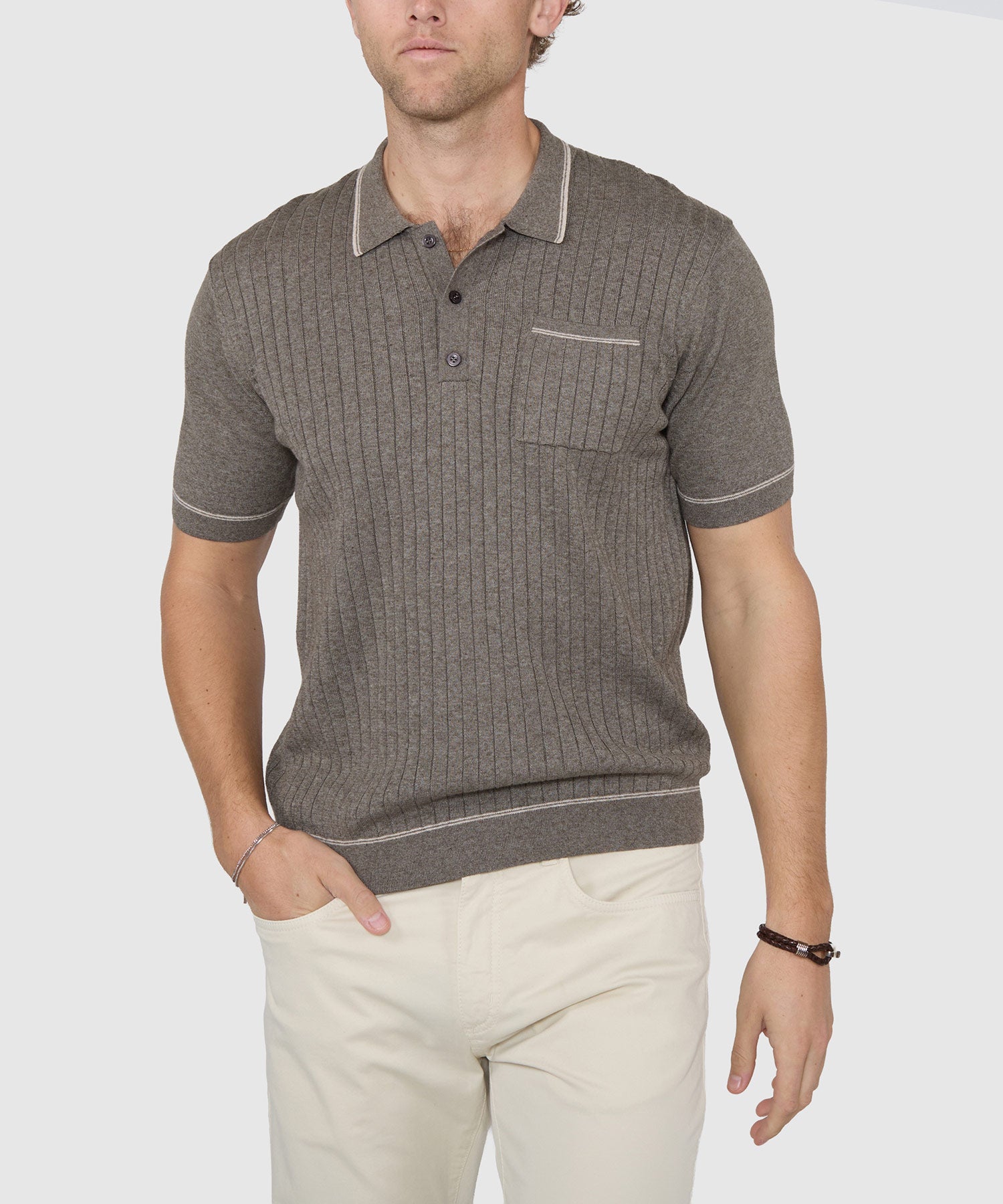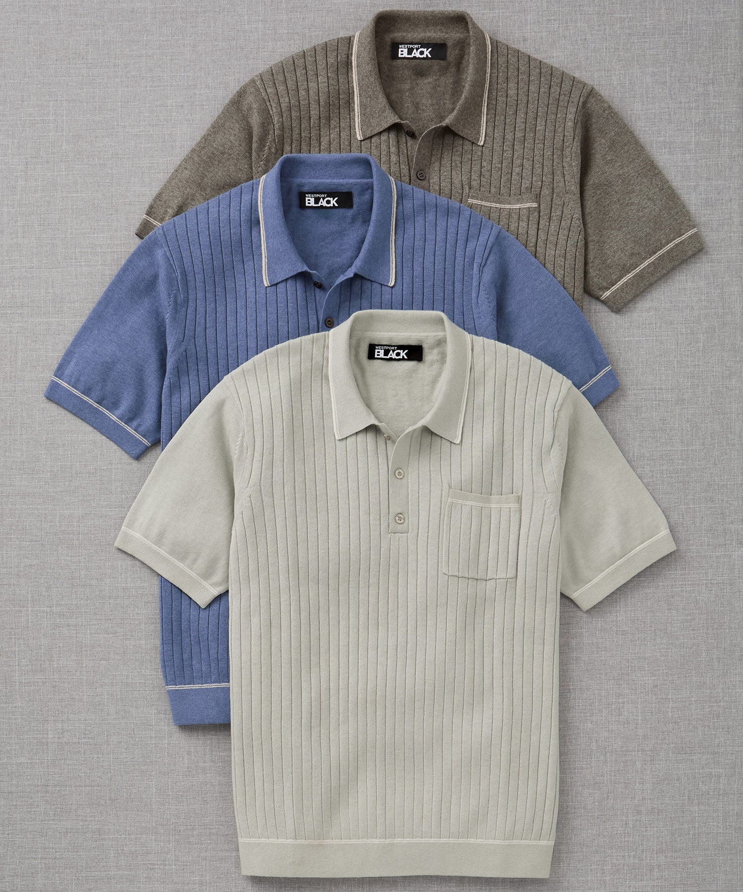 Westport Black Short Sleeve Amici Ribbed Knit Polo