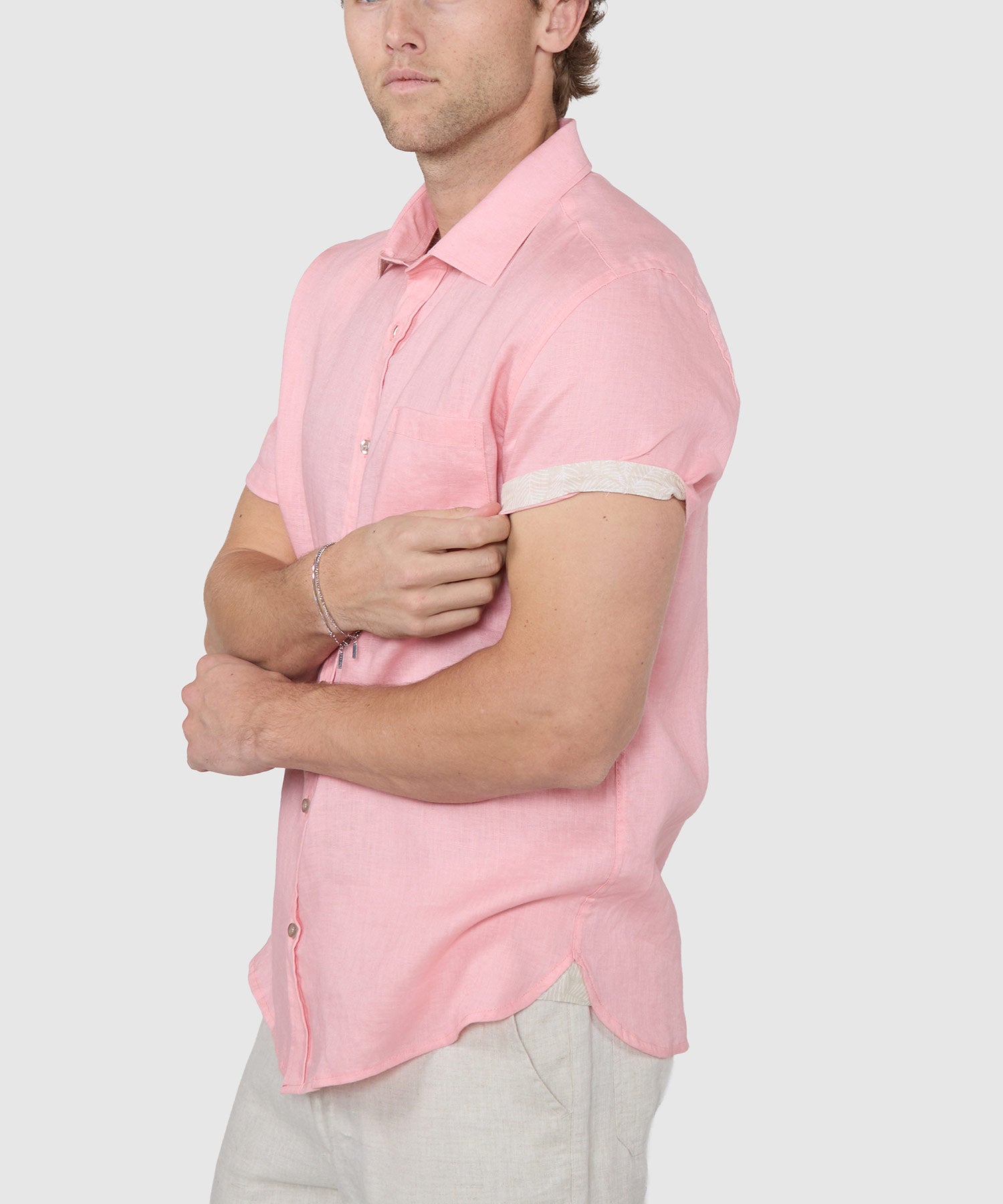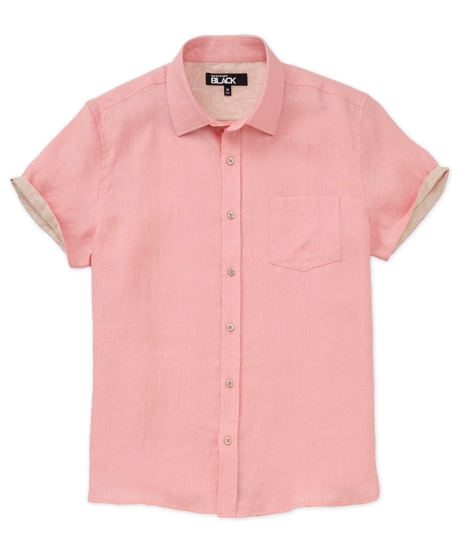 Spring into the season in cool, comfortable linen courtesy of Westport Black. This big and tall short-sleeve shirt is a stylish update to a venerable classic. Its garment-dyed process lends a "broken-in" feel to the fabric that wears better as time passes. It gives the wearer the enviable opportunity of presenting it in a few different ways. It's clearly most at home untucked and even layered over a t-shirt. It can also be dressed up by tucking it in with a pair of jeans and a boat shoe or a more rugged slip-on.