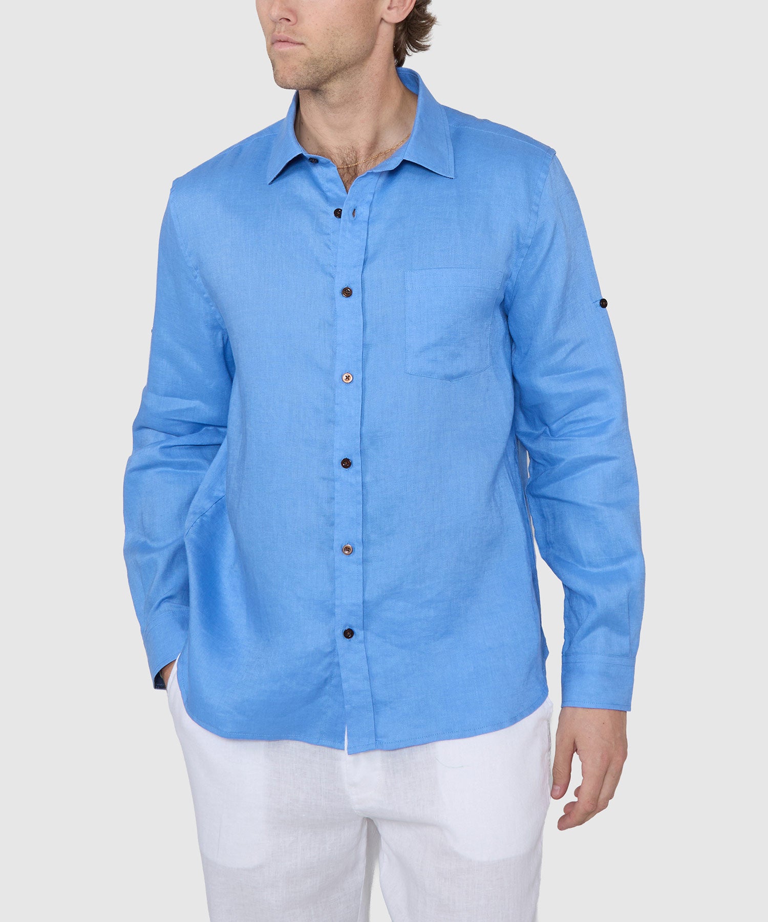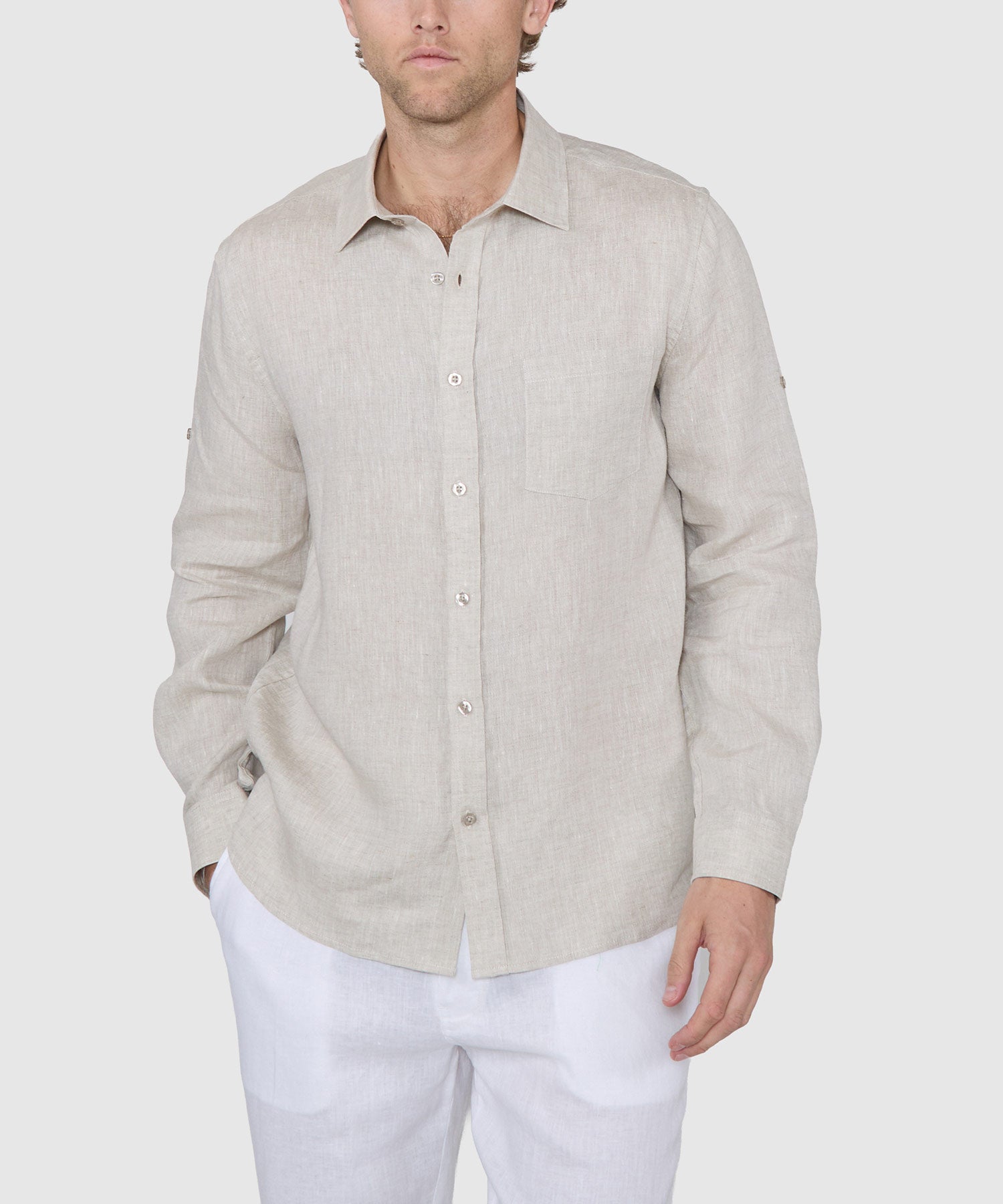 Spring into the season in cool, comfortable linen courtesy of Westport Black. This big and tall long-sleeve shirt is a stylish update to a venerable classic. Its garment-dyed process lends a "broken-in" feel to the fabric that wears better as time passes. It gives the wearer the enviable opportunity of presenting it in a few different ways. It's clearly most at home untucked and even layered over a t-shirt. It can also be dressed up by tucking it in with a pair of jeans and a boat shoe or a more rugged slip-on. It can also be layered over itself with a linen sport coat or a like-minded sweater, should the weather permit.
