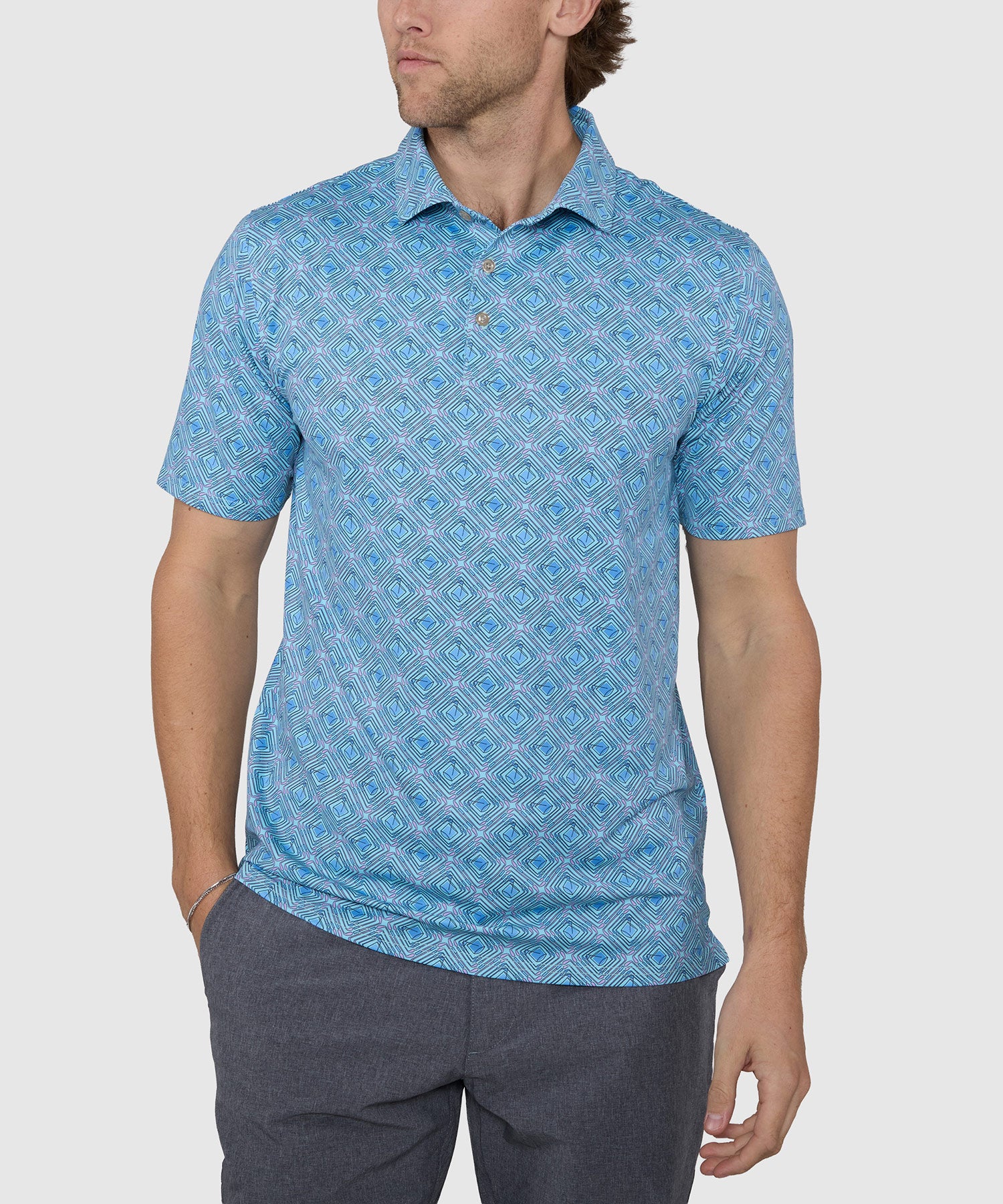 Printed designs on polos have long been a great way to inject some whimsy into any array of spring shirts. They are also an avenue toward adding even more personality to your casual looks. They can run the gamut from finely scaled geo prints to more abstract shapes or conversational motifs. No matter which one you choose, they’re bound to be a welcome addition to your wardrobe, and not only for their sartorial flavor. At its core, this polo is a performance juggernaut. It’s made from a blend of technical fabrics that bestow stretch and quick-drying properties. It’s ready to take on the yeoman’s share of the work in the warmer days coming up, keeping you cool, dry, and comfortable in style.