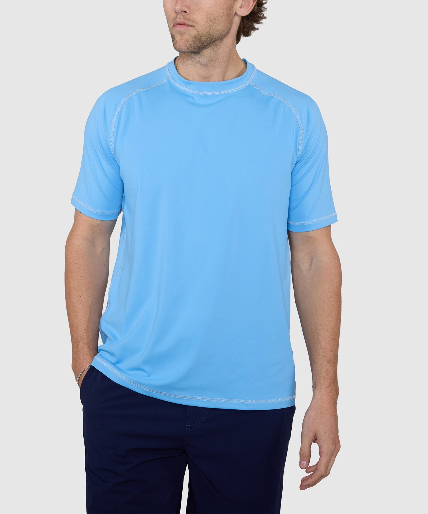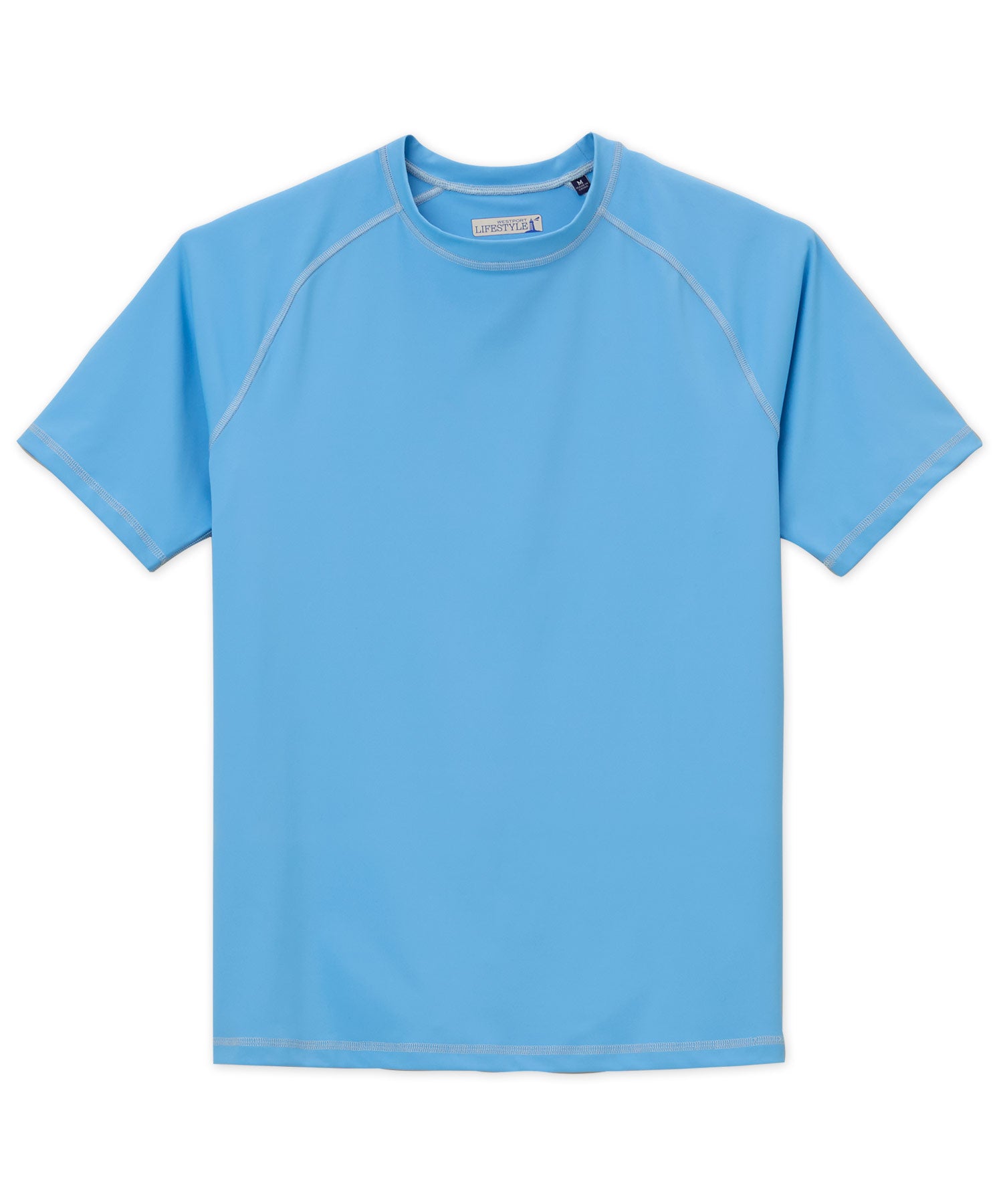 Don't let the sun catch you un-"guarded" in this protective big and tall rash guard tee. The UPF 30 protection is essential for a day spent outside, and its performance fabric, along with the raglan sleeve, facilitates greater mobility.