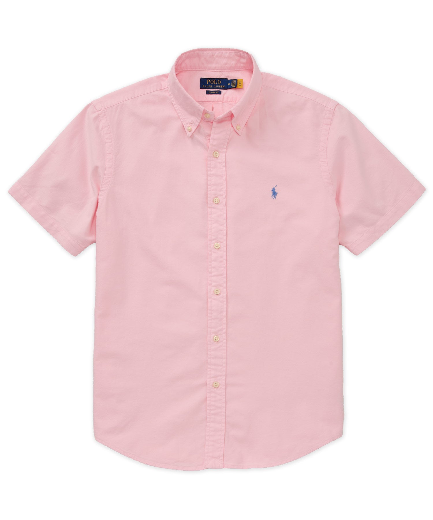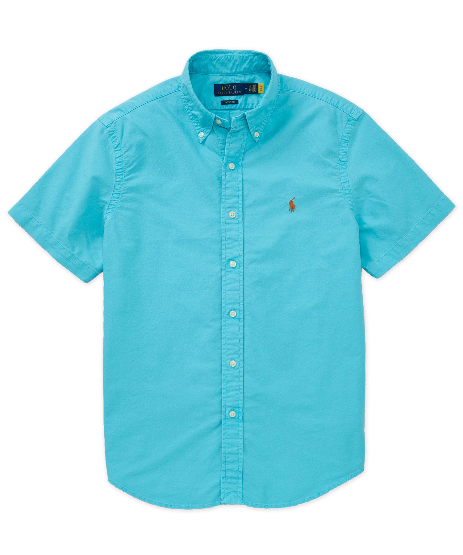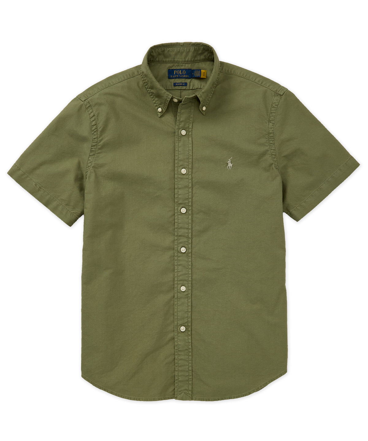 Polo's classic Oxford cloth fabric has been garment dyed for a rich color. This process also conveys that perfect broken-in look and feel. It's a welcome and comfortable addition to any wardrobe, especially in this short-sleeve version.