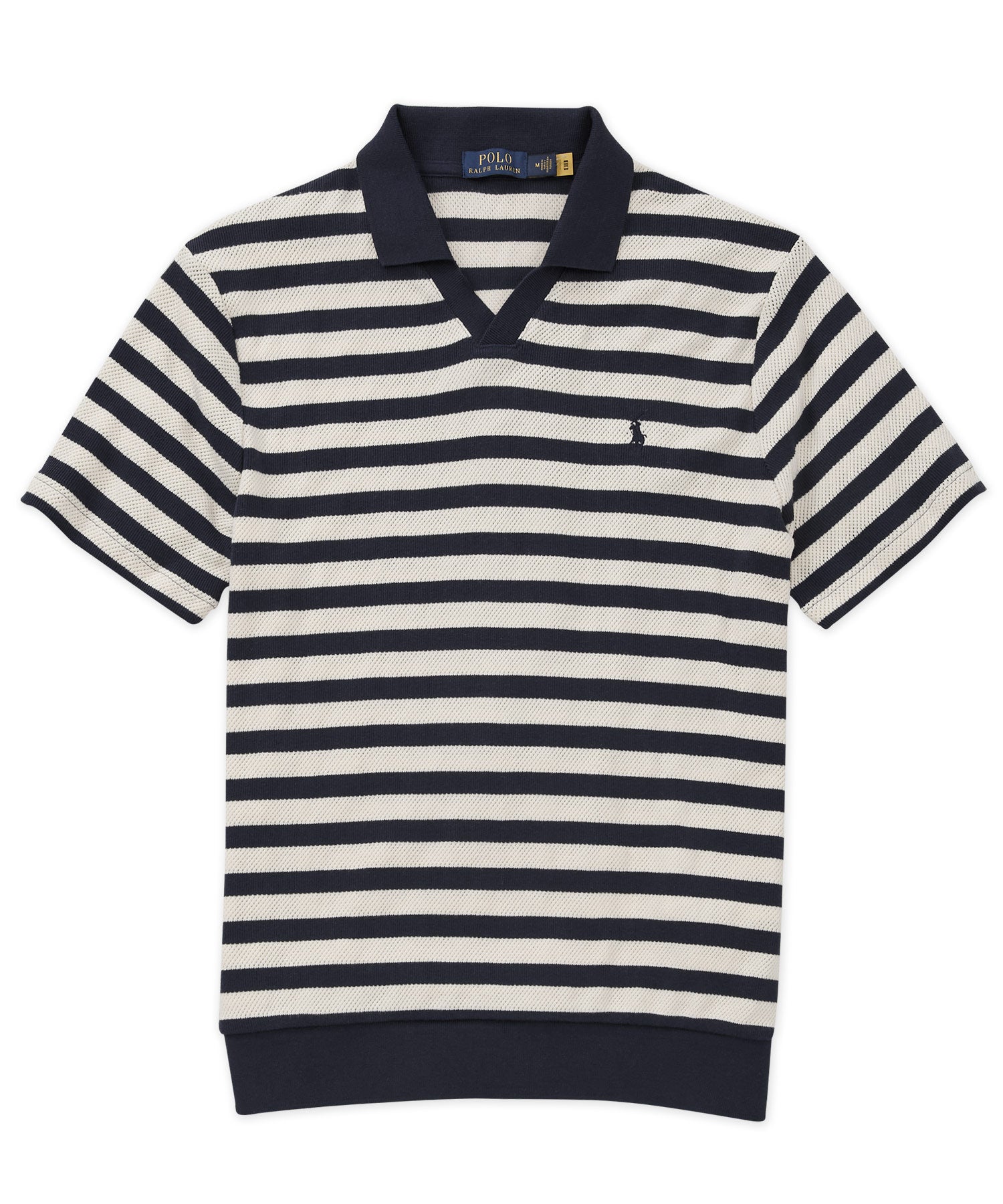 This big and tall pullover comes off as a bit of a hybrid. It's a little heavier than your average knit, but it's not quite a sweater. Ultimately, trying to categorize it misses the point. It's a casual cotton pullover that resembles the classic striping of a Breton shirt—that venerable striped pattern born from French naval tradition. It also has a textured, almost perforated aspect to the fabric that helps increase the shirt's breathability. It's a winner with jeans, chinos, or shorts, and a real conversational piece.