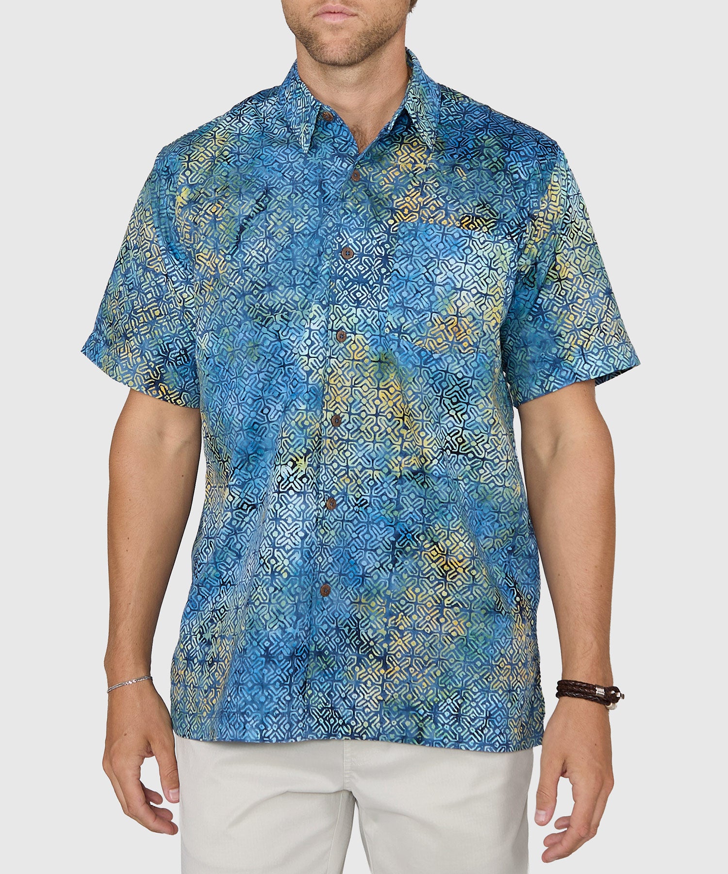 Think of this big and tall shirt as a sartorial snowflake. Thanks to its specified design and dyeing process, it really is one-of-a-kind. It's a source of pride that no two look exactly alike. This shirt is crafted through an ancient technique of wax-resistant dyeing known as batik. Originally from Java, it's been used for centuries for the ultimate personalization in all manners of dyed cloth items, not the least of which are garments like this. It's also eminently styled for the season with its intriguing designs and the breathability afforded by its premium cotton fabrication.