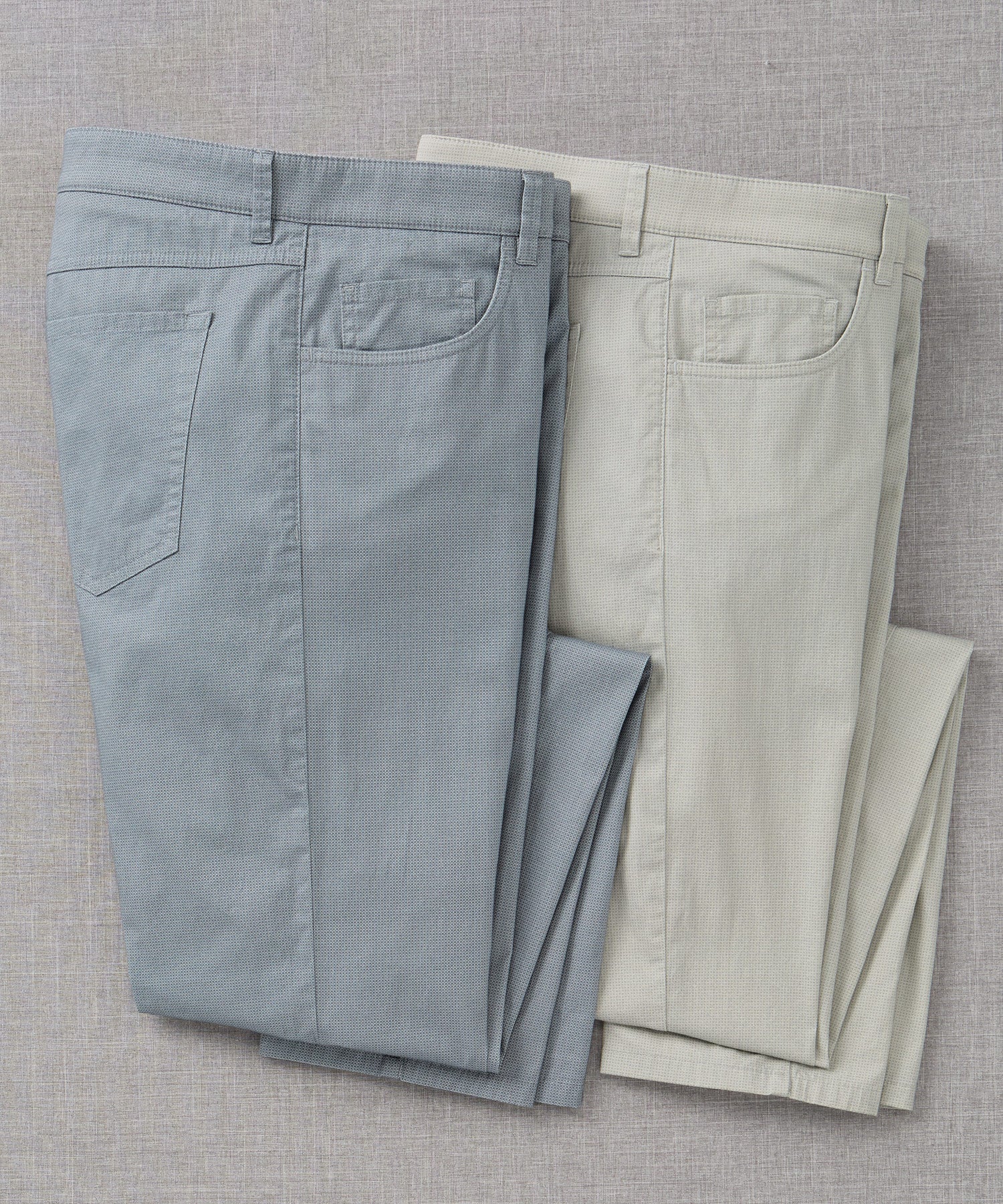 Whether it's shirts, jackets, or any other category, each season brings both familiar favorites and some new offerings. These big and tall casual pants are squarely among the innovative crowd. They are essentially cotton pants but are imbued with a touch of stretch. This amalgam gives them all the breathability of the former with the comfort and mobility of the latter. What's really striking about these is the mosaic print they bear. It's applied digitally and has the dual benefit of a bright, intricate design without disrupting the fabric's attributes or performance. A micro-sanded finish has been applied for unparalleled softness. They are also made in a jeans-styled five-pocket model. They are altogether a unique and rewarding entry in this season's pantheon of pants from which to choose.