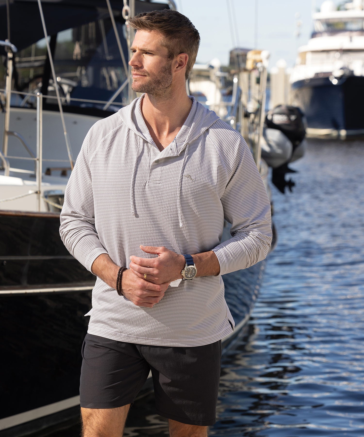 This big and tall hoodie stands apart thanks to the blend of performance fabrics that help craft it. It's lightweight enough for the incoming warmer weather and has that familiar classic Tommy Bahama fit for a relaxed feel. The front button placket gives it a distinct look and allows for some interesting layering options. You can pair it with a t-shirt for the most casual of looks, or slip it over a sport shirt for a slightly elevated approach.