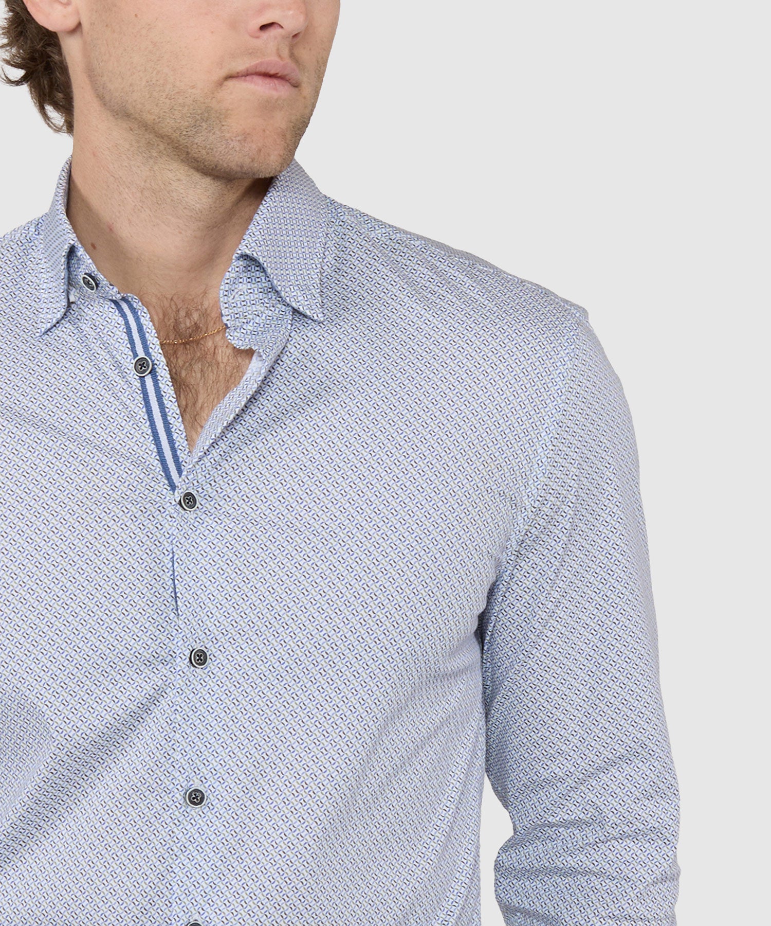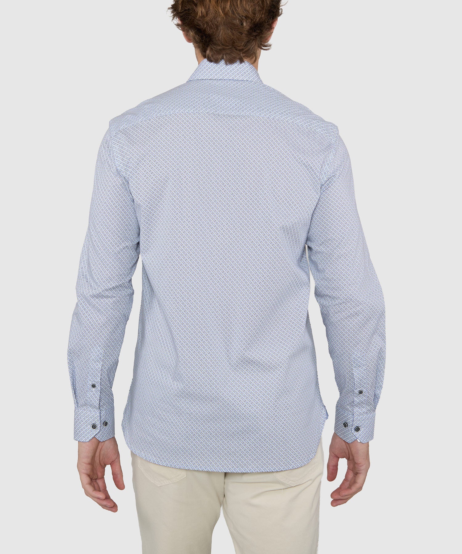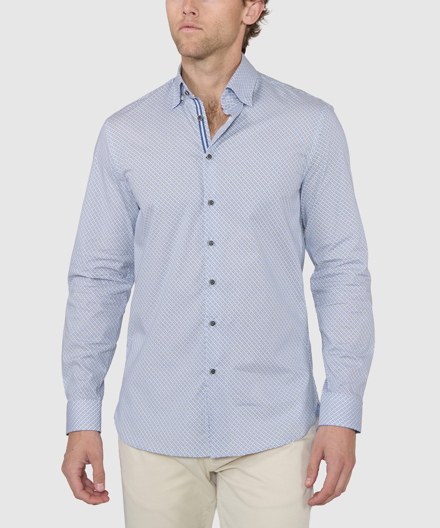 Make a stylish statement this spring with a printed sport shirt. It's a little break from the norm and a great way to stand out from the crowd. This one is sure to keep you comfortable in addition to looking your best. Premium cotton is paired with modern fibers to add a dimension of stretch-infused mobility. Custom contrast detailing at strategic points only serves to make this a sport shirt to take a second look at.